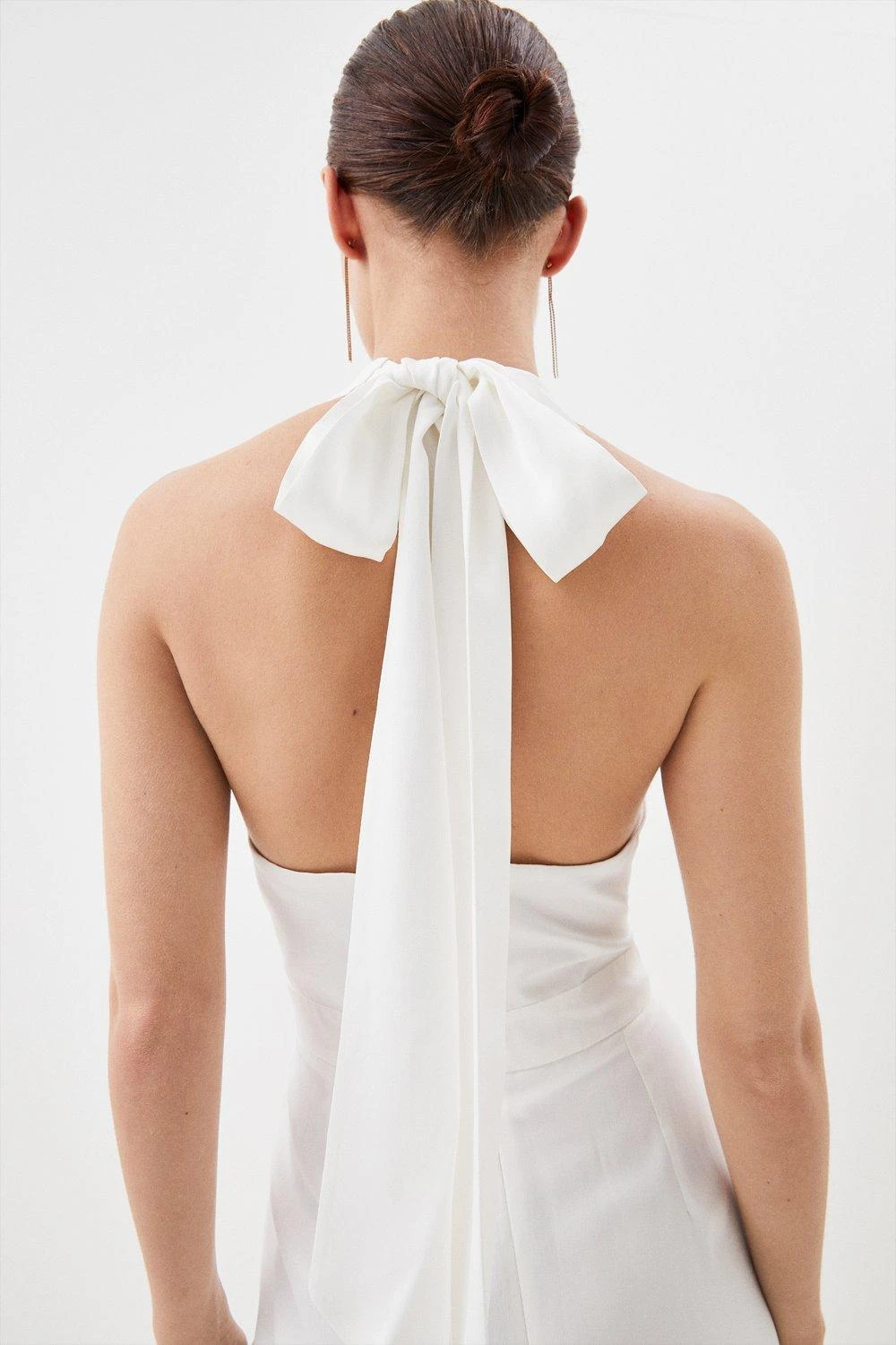 Enriched with a floral print and pastel shades, this jumpsuit exudes feminine appeal. A wide leg design creates a universally flattering silhouette, while satin crepe fabric gives this piece a luxurious and lightweight feel. Elevate this one-piece with heels and accessories for a captivating summer occasion look.