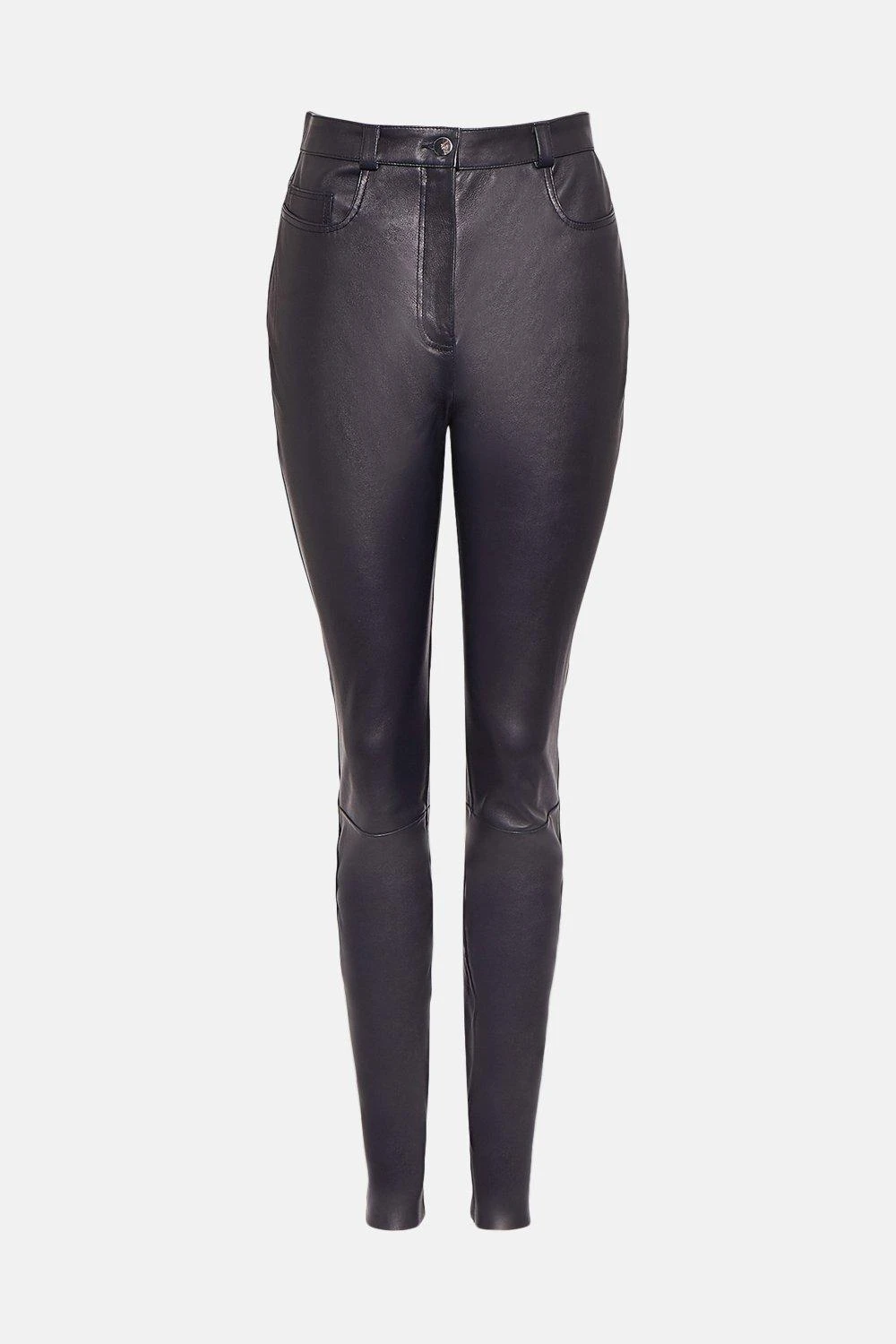 Crafted using premium leather,, there’s not a pair of jeans more sumptuous. Feeling like a second skin when worn, your figure is coated and enhanced in luxury. Emphasising the waist with an iconic high-rise style, they’ve been finished off with glossy metal closure and stitching that’ll highlight all the right places.