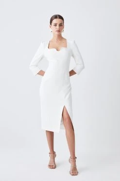 This timeless dress lends a note of elegant femininity to workwear staples. Signature crepe fabric sculpts the form, while a sweetheart neckline frames the silhouette. Whether for the office or a special occasion, this versatile piece promises to deliver sophistication for years to come.
