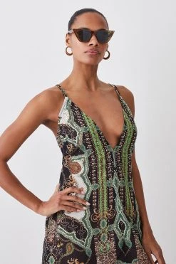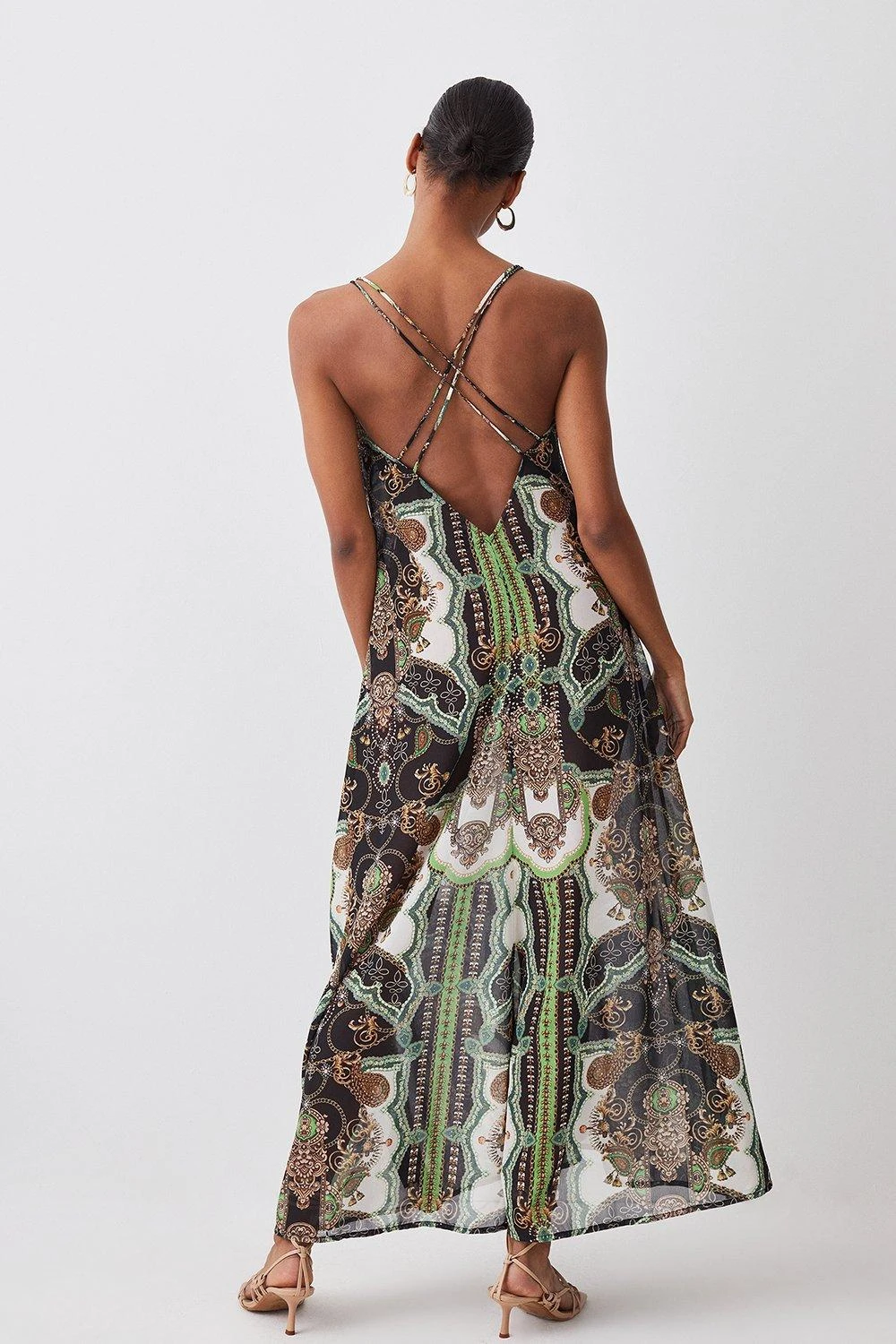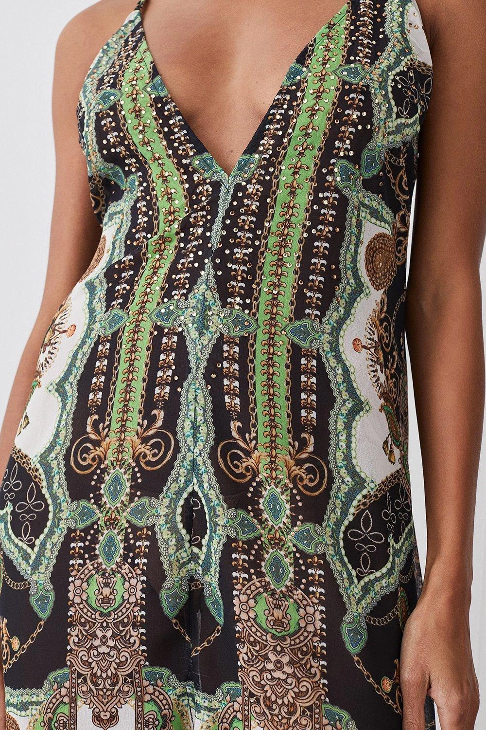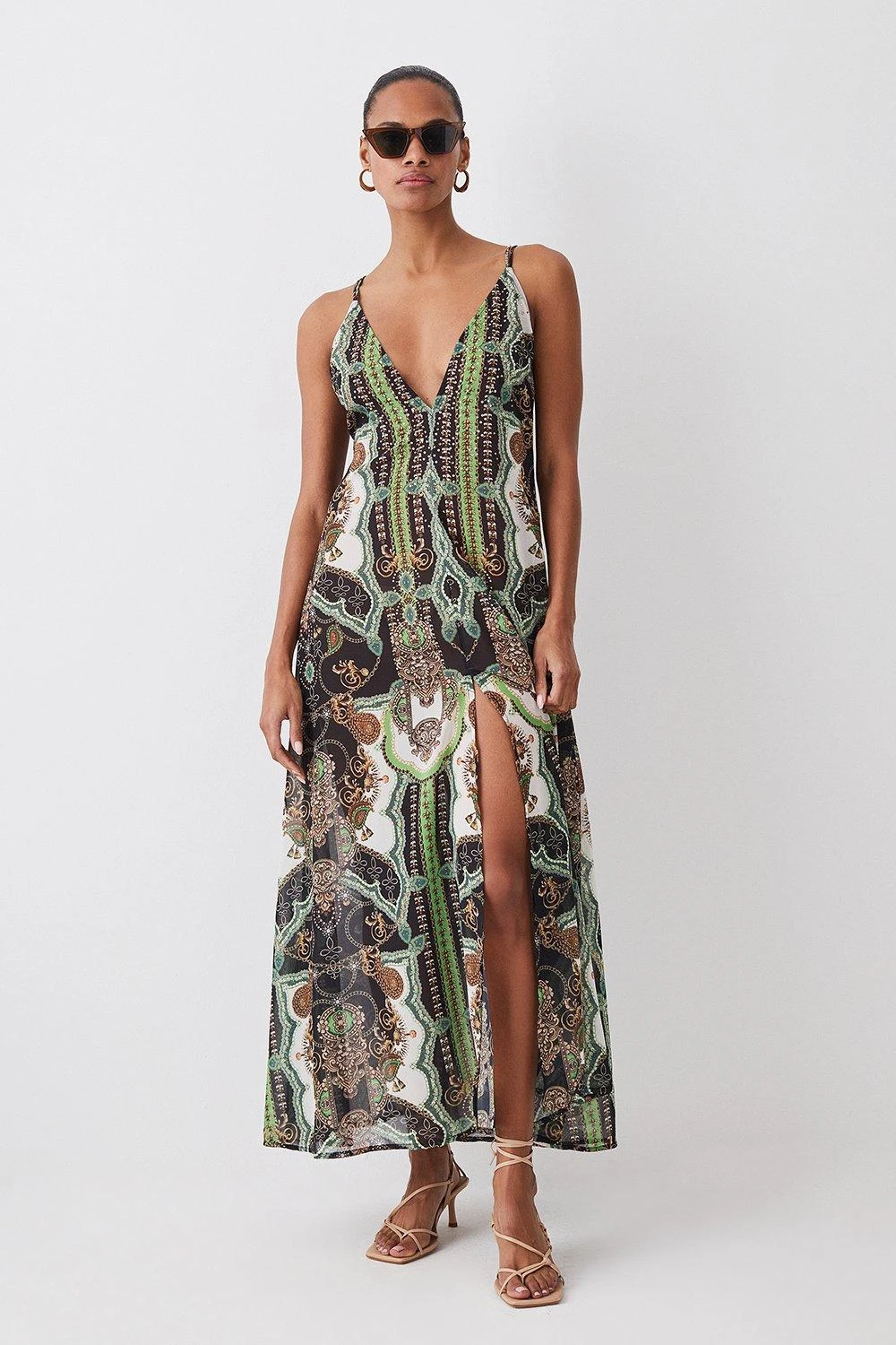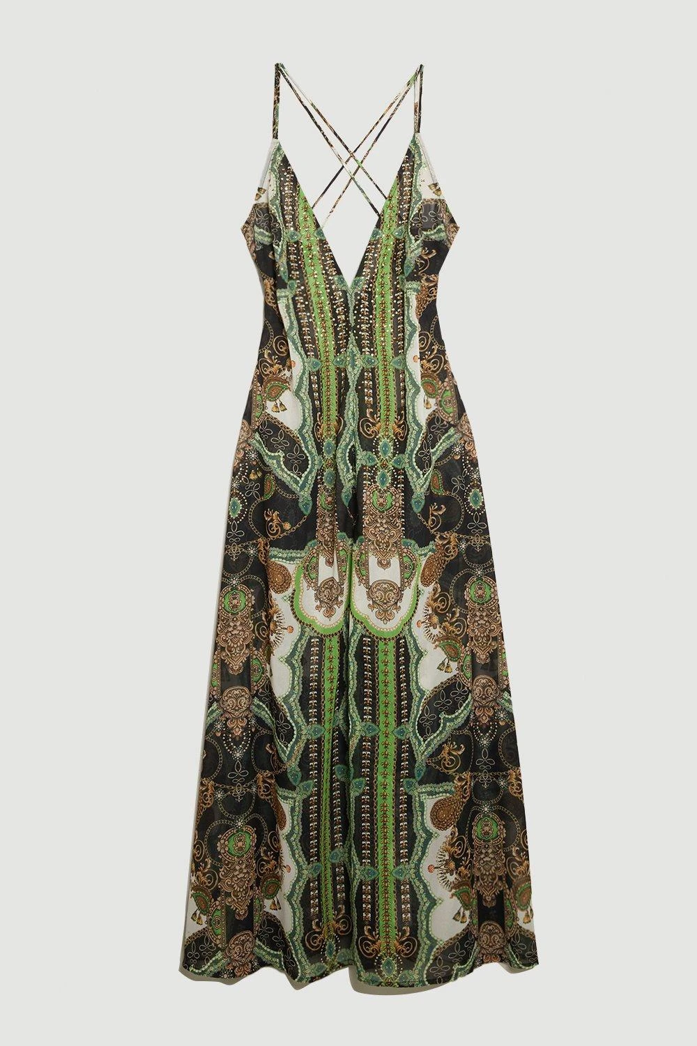 Karen Millen Placed Print Embellished Strappy Beach Maxi Dress