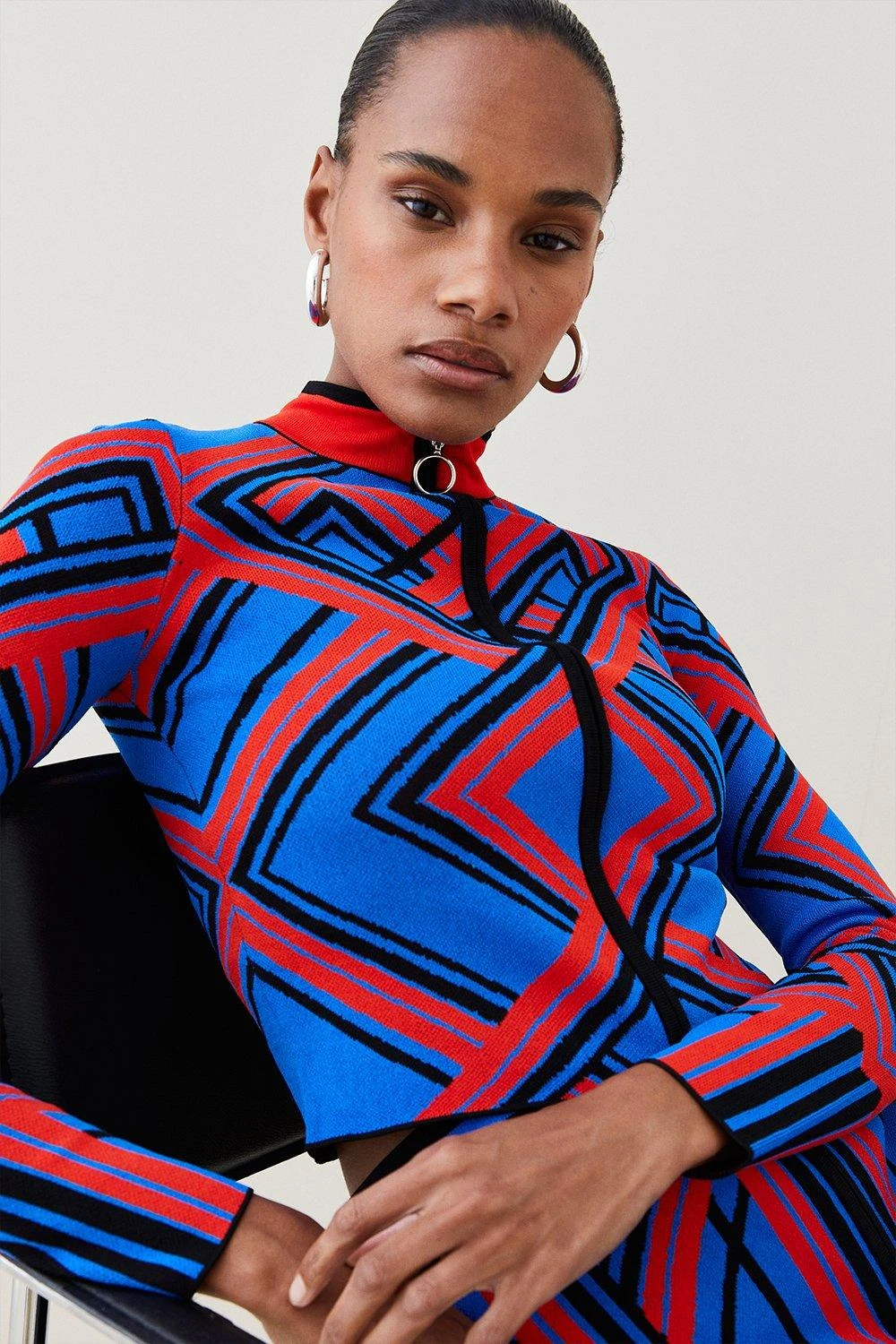 Set the tone for new-season styling in this sporty placement-print jacket. With a sporty round-pulled zip and high neckline, it nods to apres-ski looks from the 1970s and comes cut to a contemporary cropped finish with long, form-fitting sleeves.