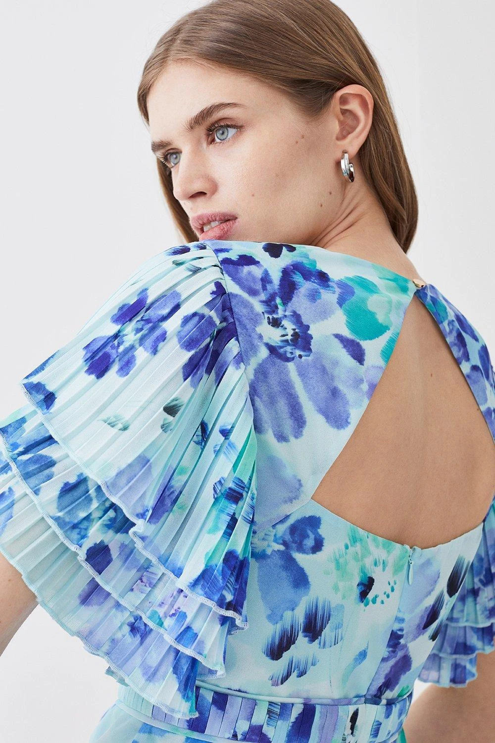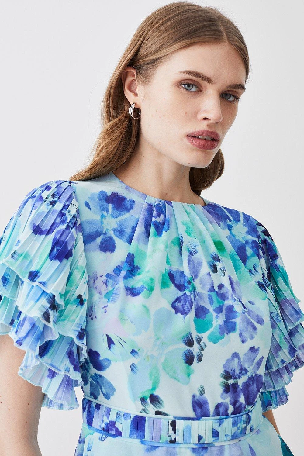 Karen Millen Pleat Detail Petal Print Ruffle Top