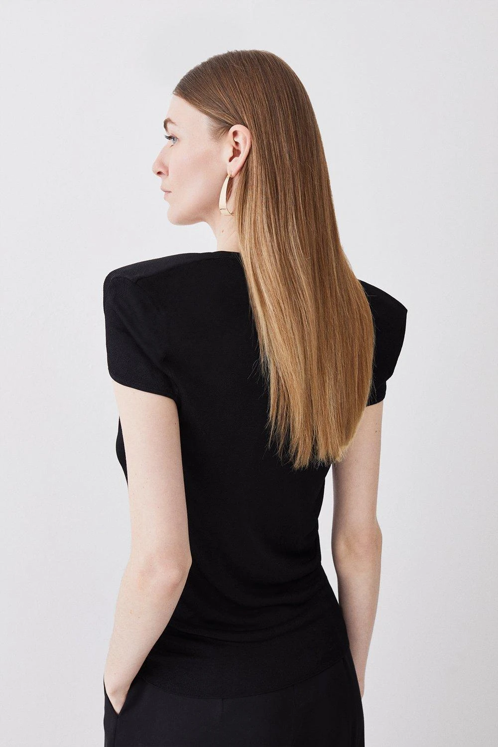Karen Millen Plunge V Neck Power Shoulder Slinky Knit Top