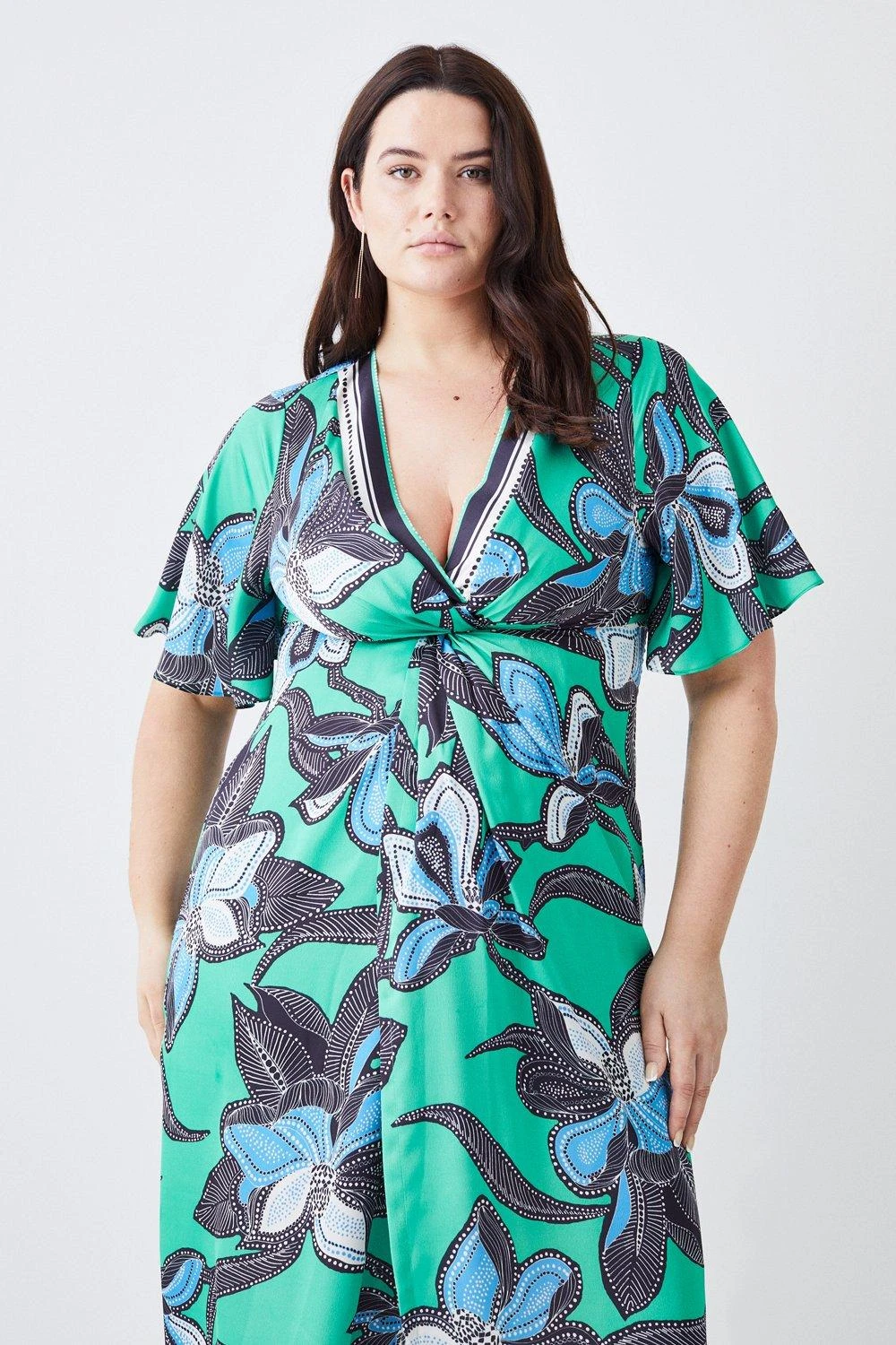 Karen Millen Plus Size Batik Floral Hammered Satin Twist Midi Dress