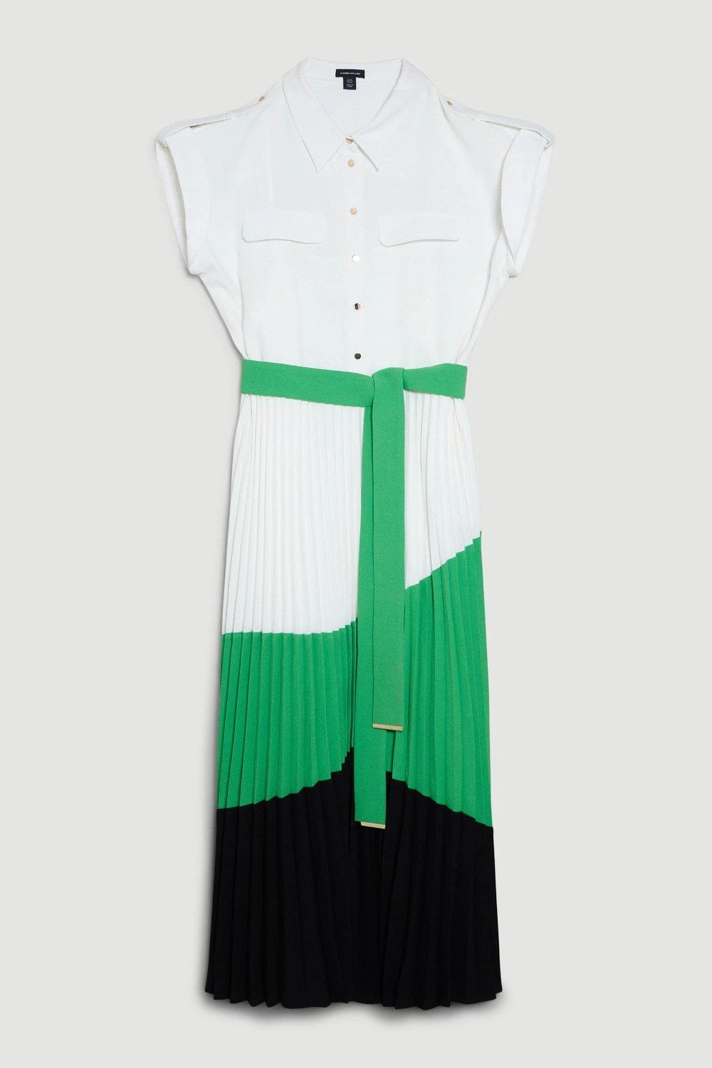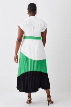 Karen Millen Plus Size Colour Block Pleated Woven Midi Shirt Dress