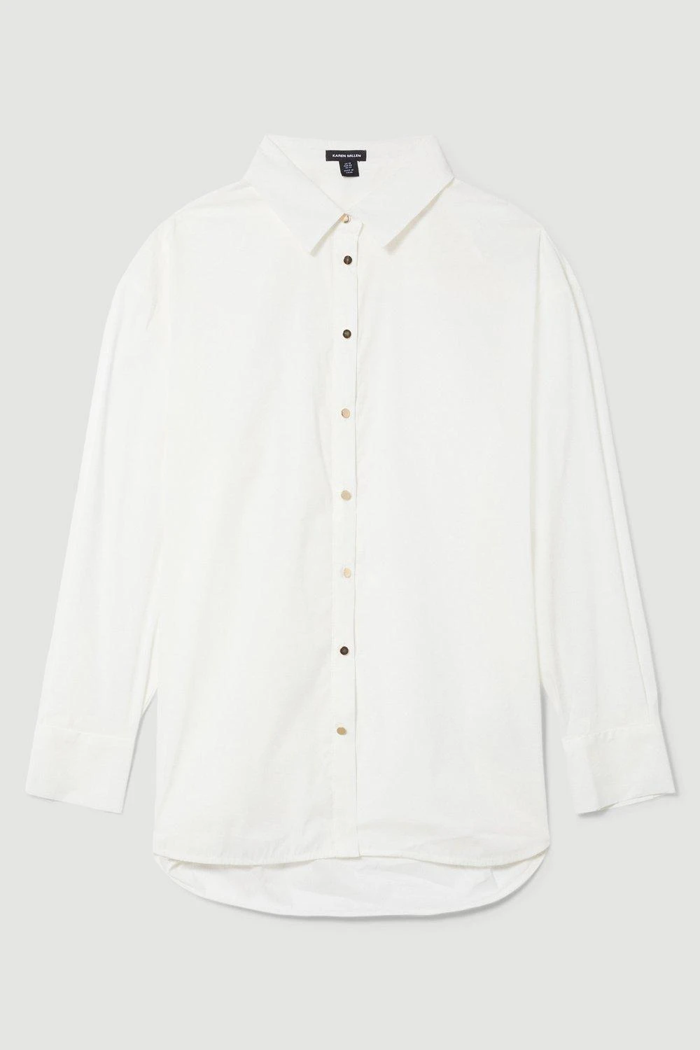 An undeniable wardrobe classic, this staple shirt is crafted for lightweight cotton for a comfortable feel and elegant appearance. Topstitch details and a collared neckline nod to traditional tailoring, while gold-tone buttons provide a polished finish.