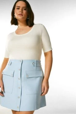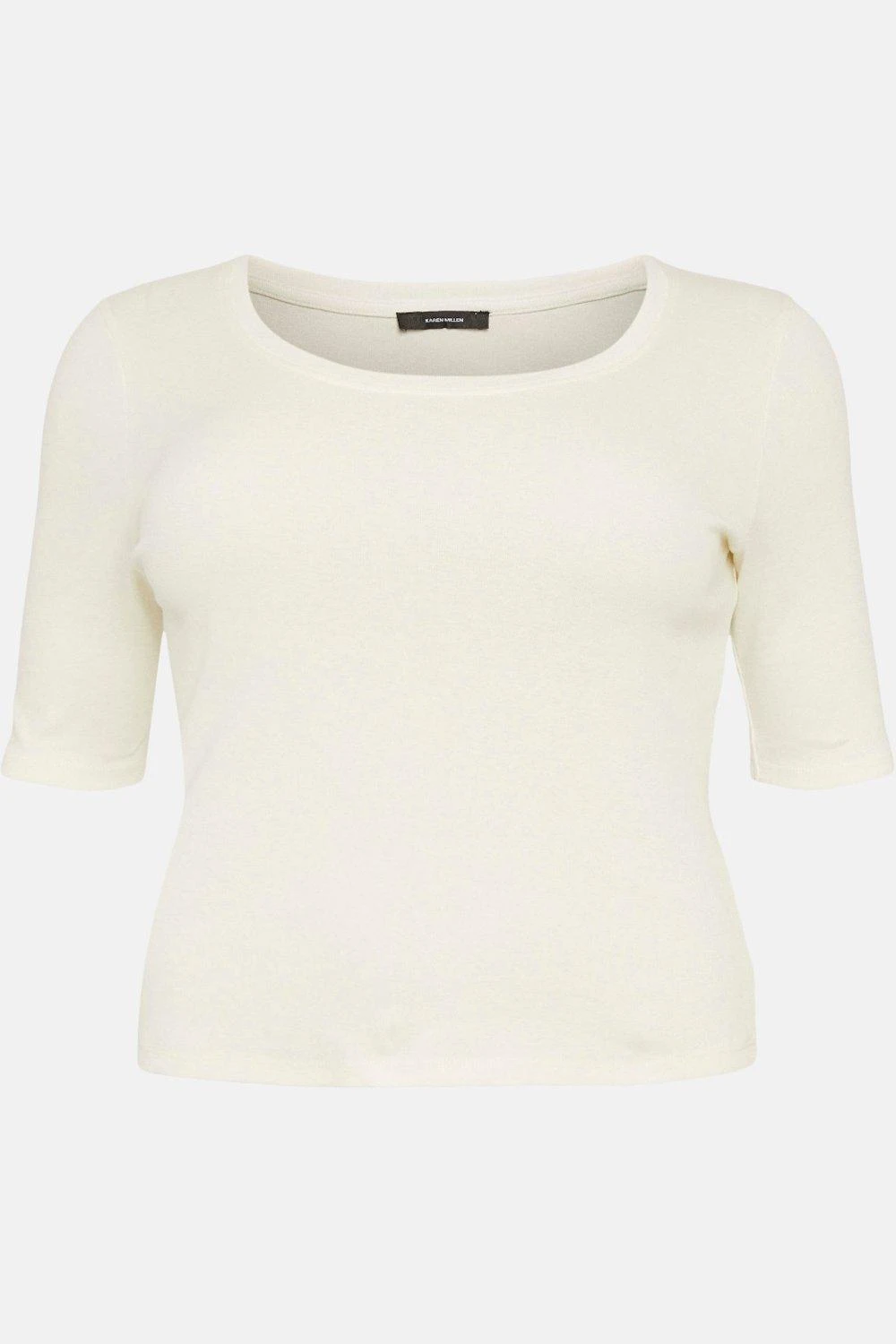 Fitted half-length sleeves finishing in line with the waist create a flattering line and go perfectly with high-waisted bottoms. Created in a lightweight stretch organic cotton that conforms to the body, this top will go from day-to-night with a versatile round neckline.