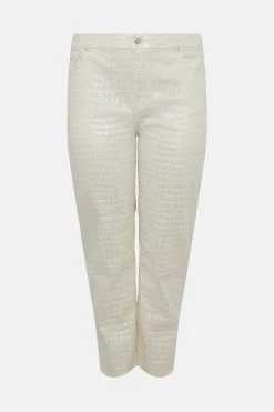 Let your wild side shine. These coated cotton-blend trousers have a unique croc-embossed finish for an eye-catching touch of texture and feature straight legs and classic denim detailing. Finished with a button fly closure, five pockets and belt loops, they blend the classic with the contemporary, sitting high on the waist for a feminine fit.