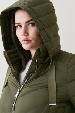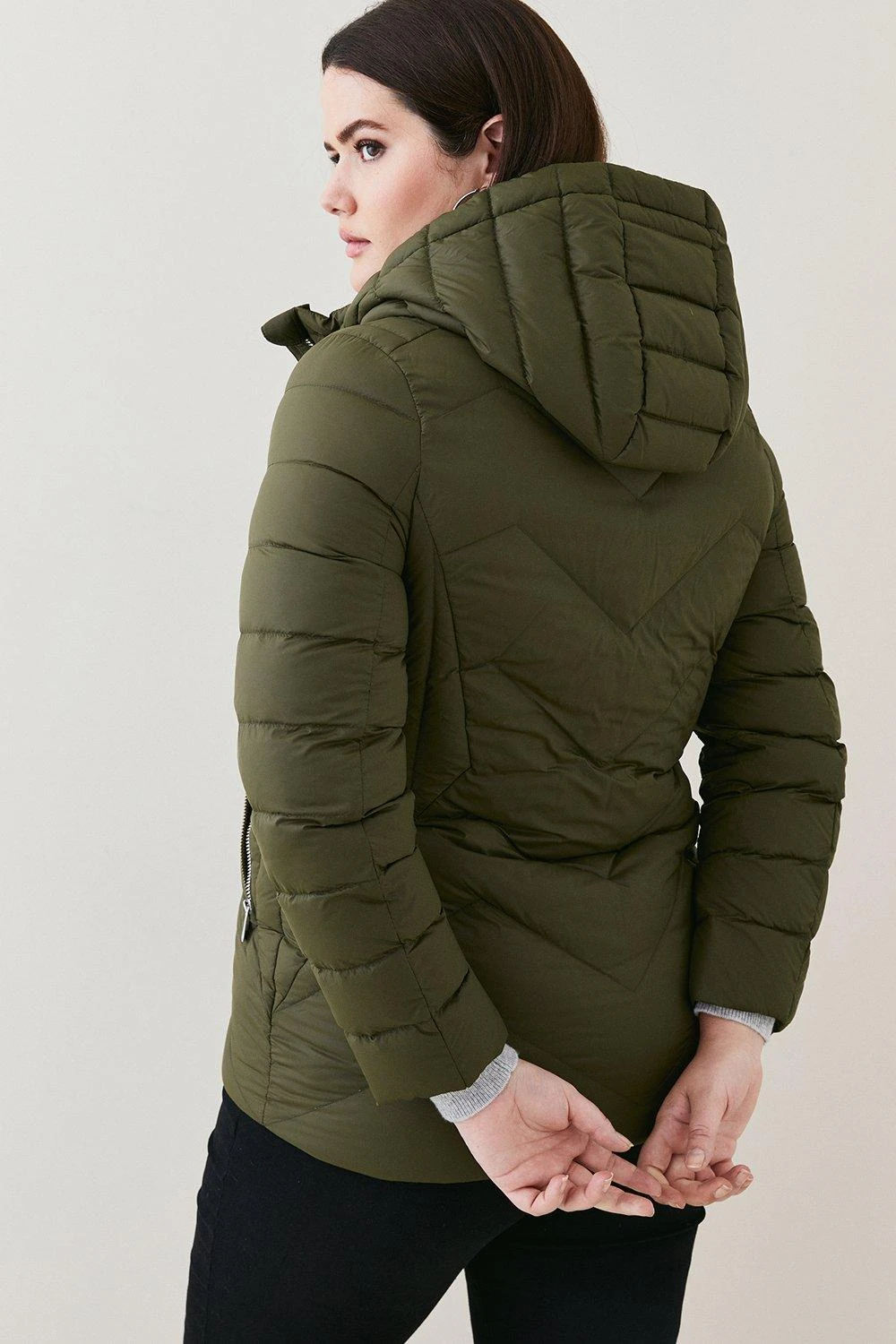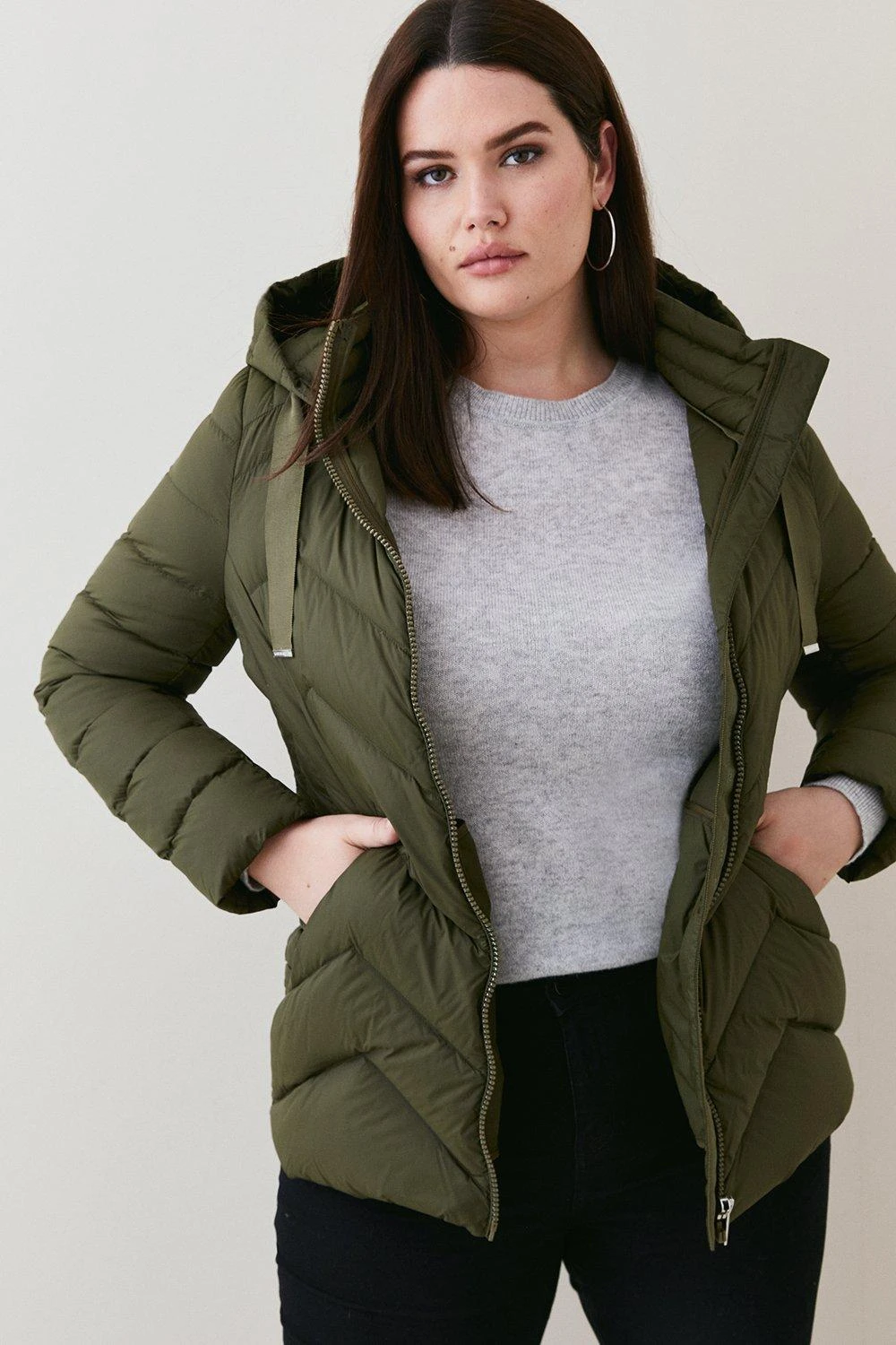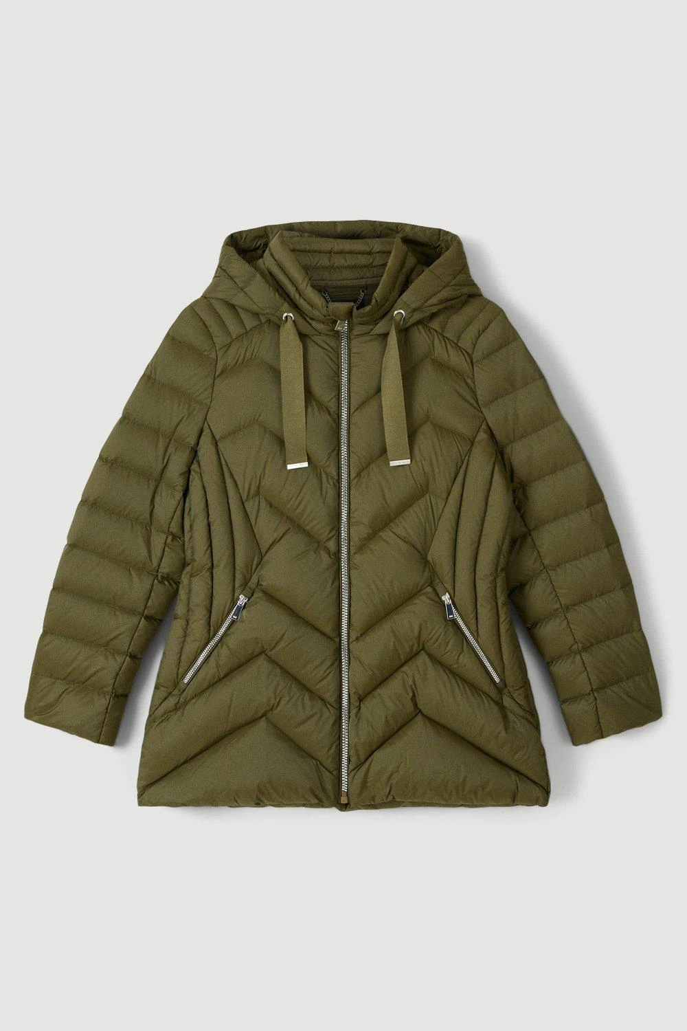 Shell:100% Nylon. Binding: 100% Polyester. Filling: 100% Down. Don not use fabric conditioner. Contains non-textile parts of animal origin. Model wears UK 18/ US 16. Length measurement: 75cm.
