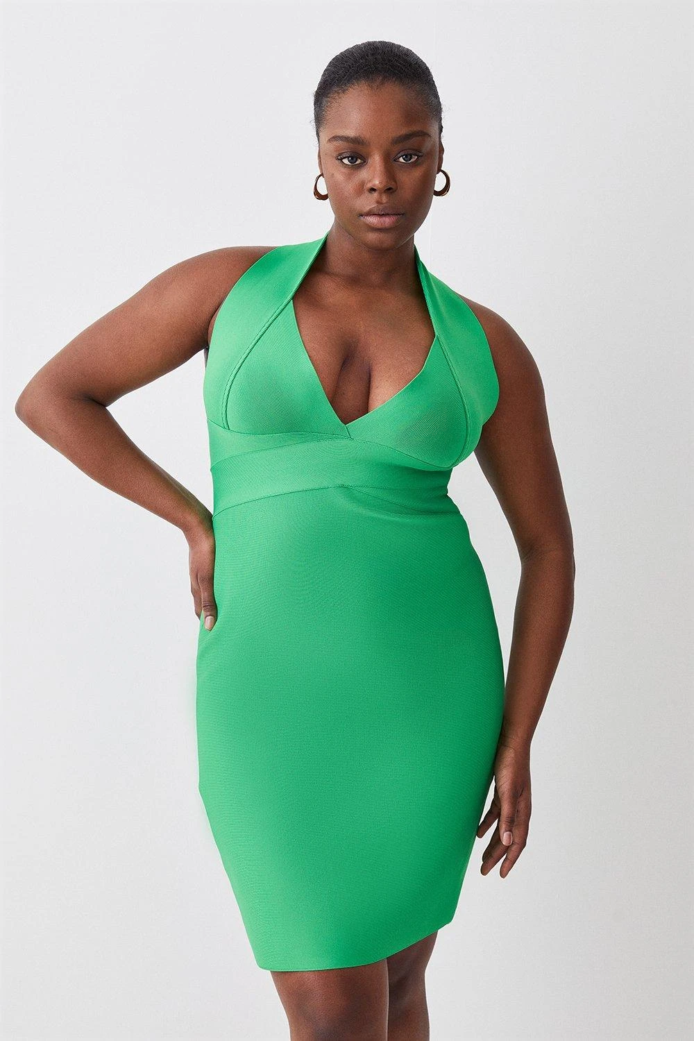 Karen Millen Plus Size Halter Neck Bandage Deep V Mini Dress
