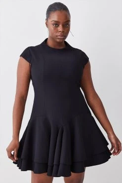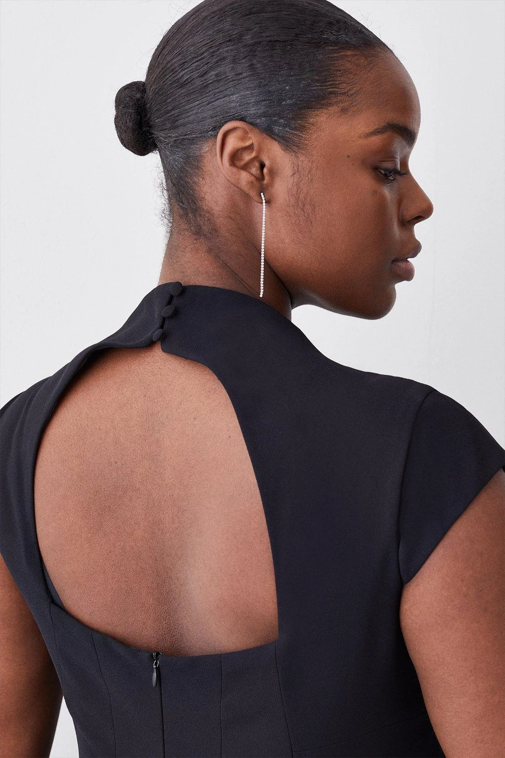 Exude understated elegance in this mini dress. Cap sleeves and a high neck add a sophisticated touch, while a ruffle skirt flares out to a flattering A-line cut, creating an enviable silhouette. A cut-out back detail gives this piece a contemporary feel.