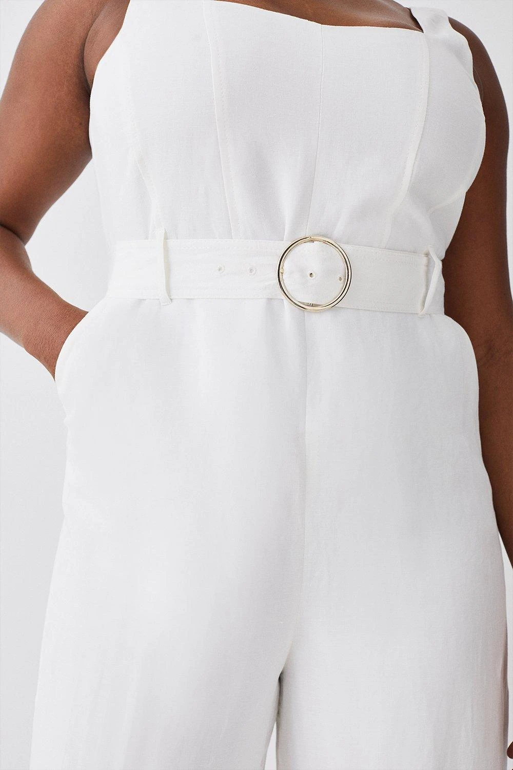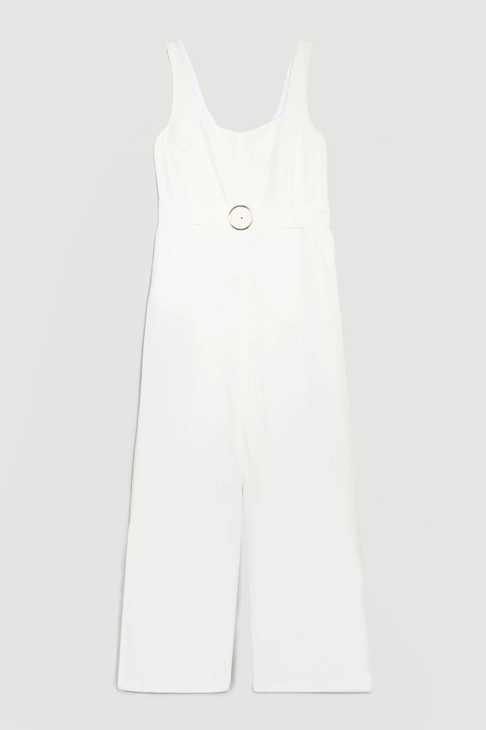 Offering lightness and comfort, this linen jumpsuit is the perfect summer staple. A wide-leg cut and buckle belt create a flattering silhouette, while a square neckline and a refined touch.