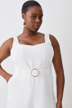 Main: 50% Linen, 50% Viscose. Lining: 100% Cotton. Belt Included. Dry clean only. Model wears UK 16/US 18. Model height: 5”9