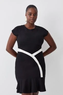 Karen Millen Plus Size Ponte Contrast Trim Mini Flippy Dress