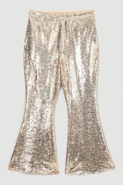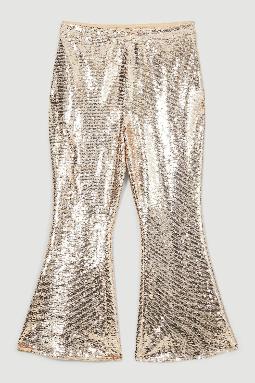 Scintillating with midnight mastery, showcase a penchant for fashion-fist tailoring with these sequined trousers. Framing the form with a high-rise waist, they flow into a languid length for a statuesque effect.