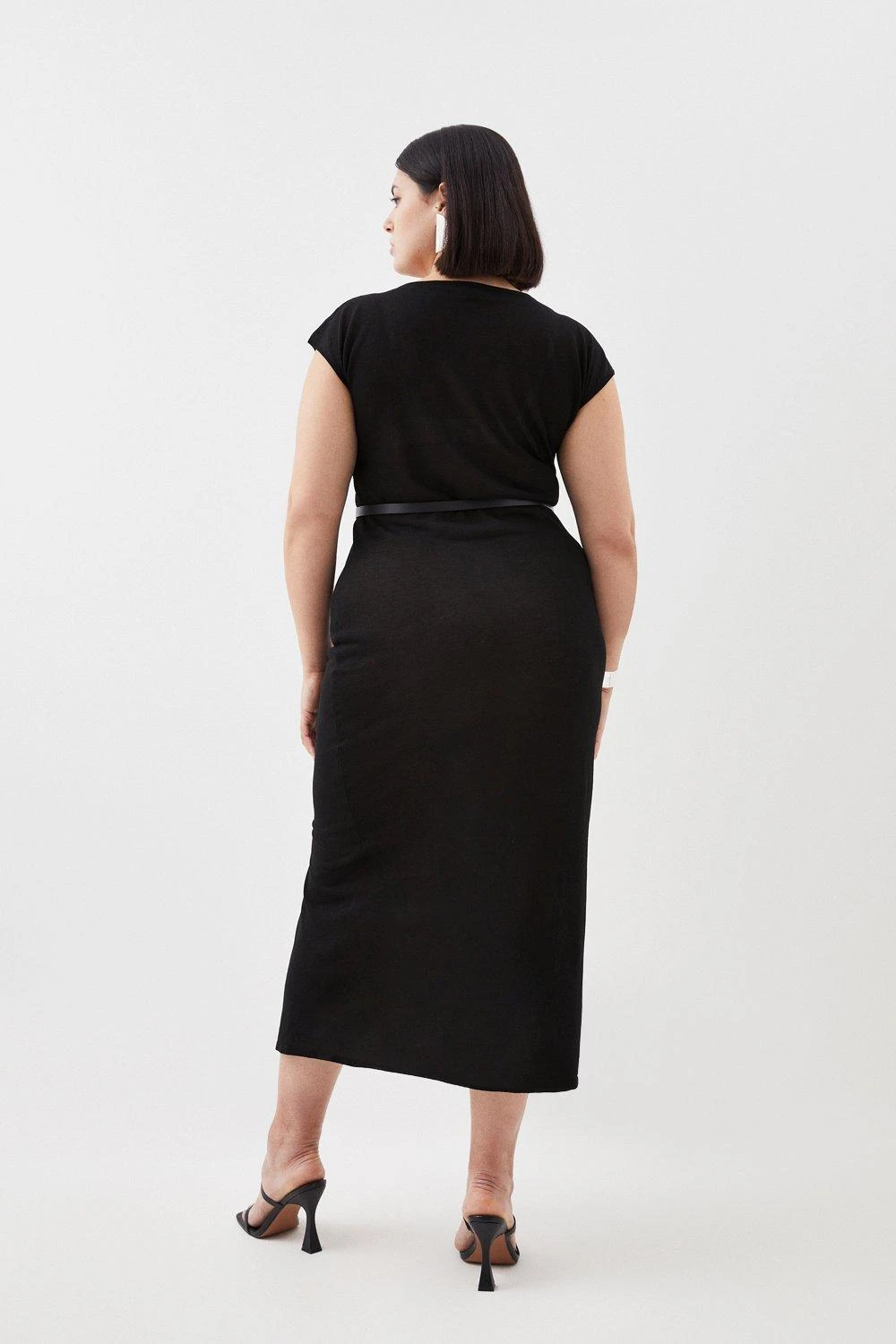 Crafted with lightweight knitted fabric, this dress effortlessly skims over the form, creating a flattering silhouette, while a side leg slit adds a sultry finish. Style this piece with heels or boots for an effortless daytime ensemble.