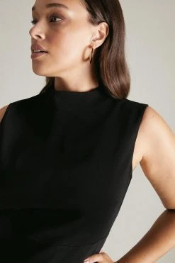 Dress to impress with this stylish tailored dress. Designed in a mid-length with a figure-flattering fitted waist, it features a high neck and asymmetrical hem for a unique touch.