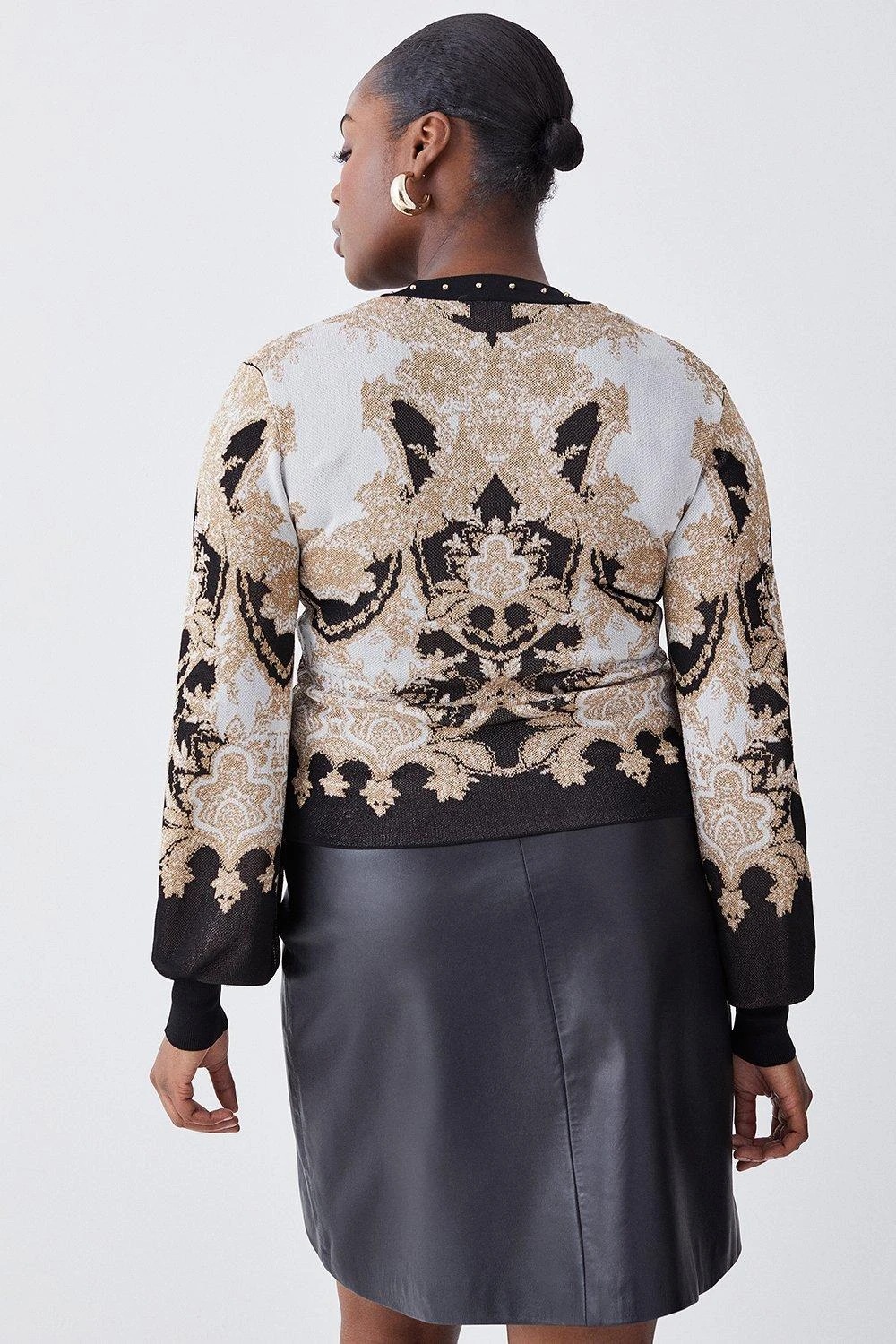 82% Recycled Viscose, 18% Metallised Fibre. Do not bleach. Model height approx 5″9. Model wears Plus Size XL.
