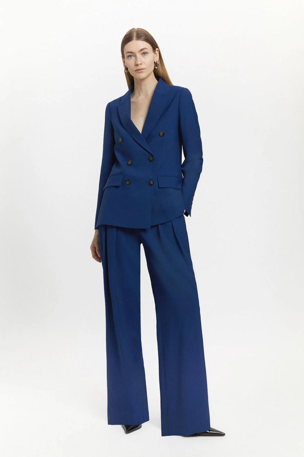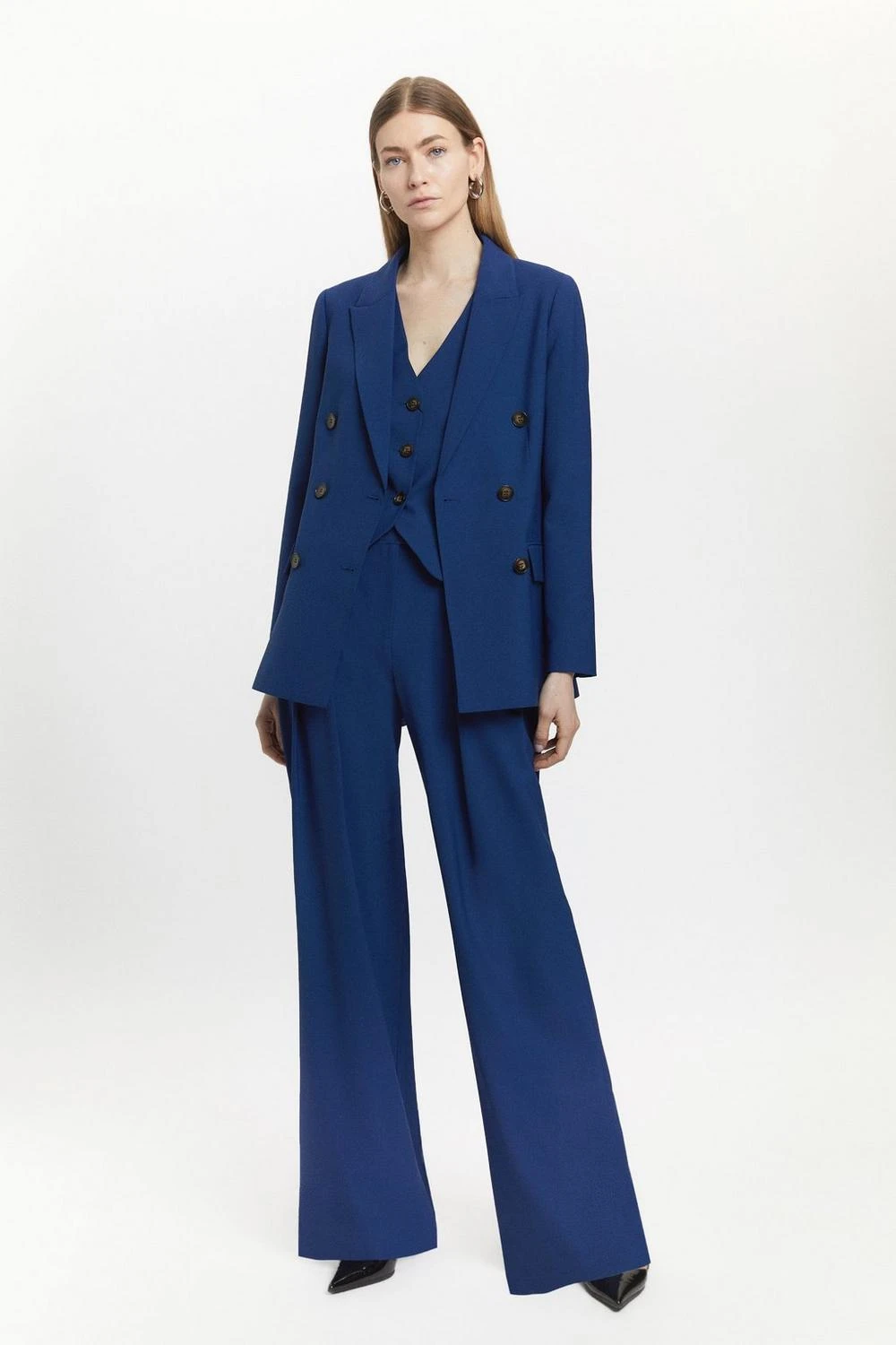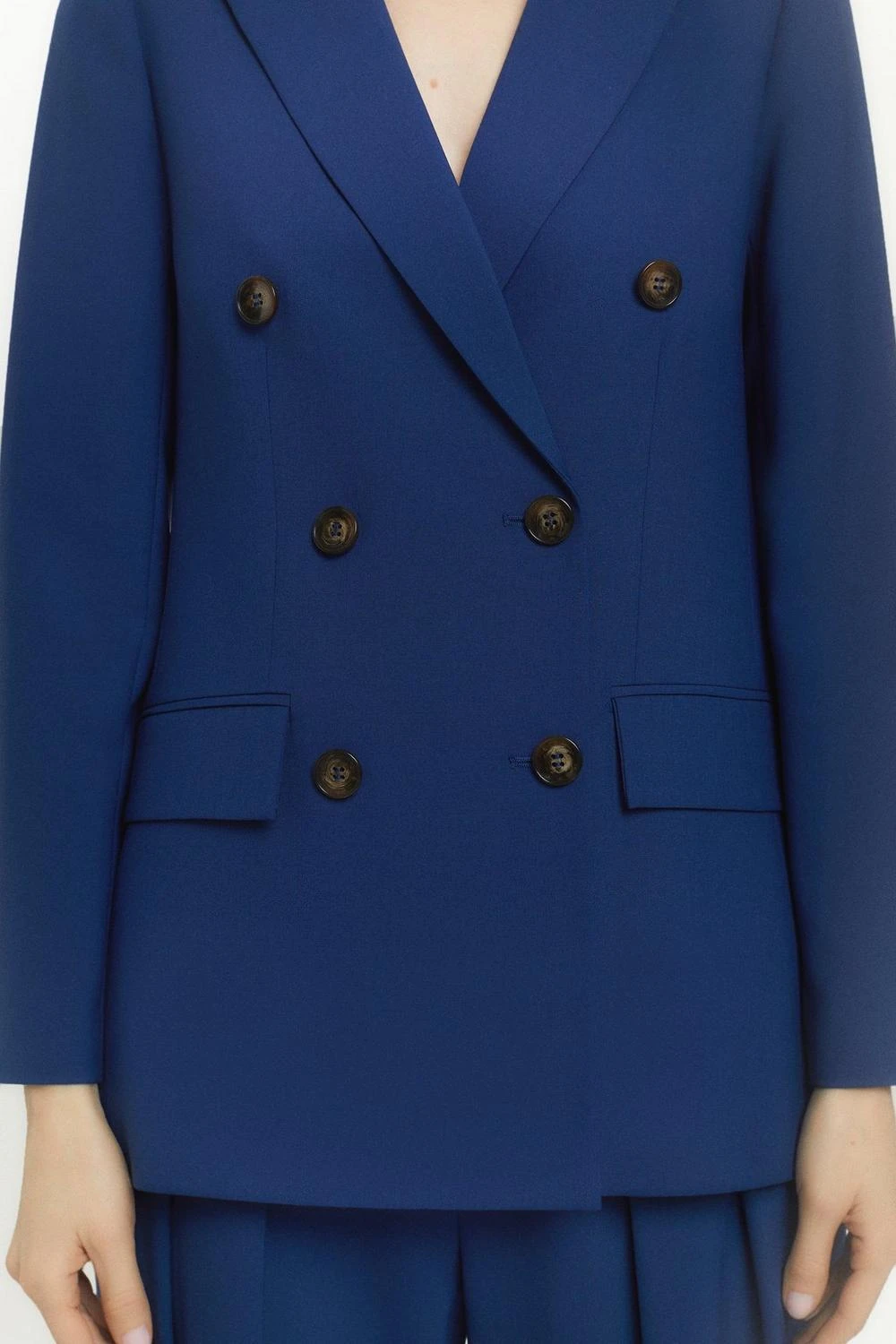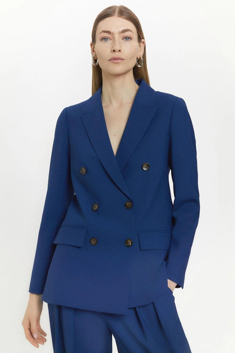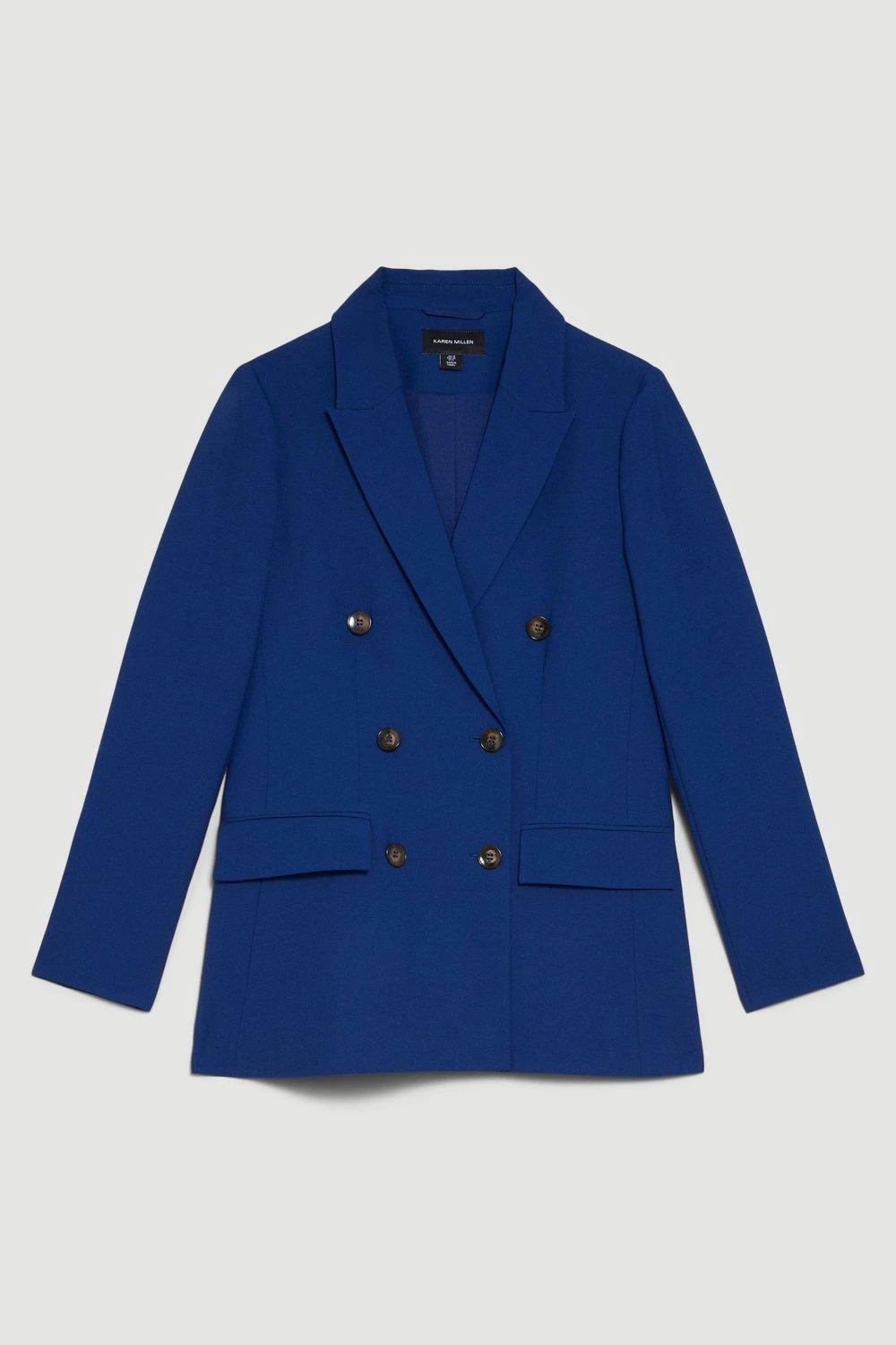 Karen Millen Polished Stretch Wool Blend Double Breasted Blazer