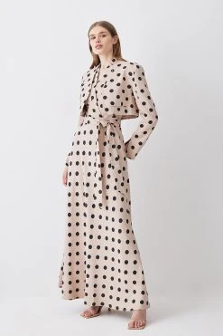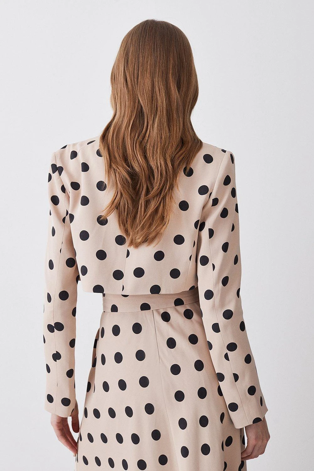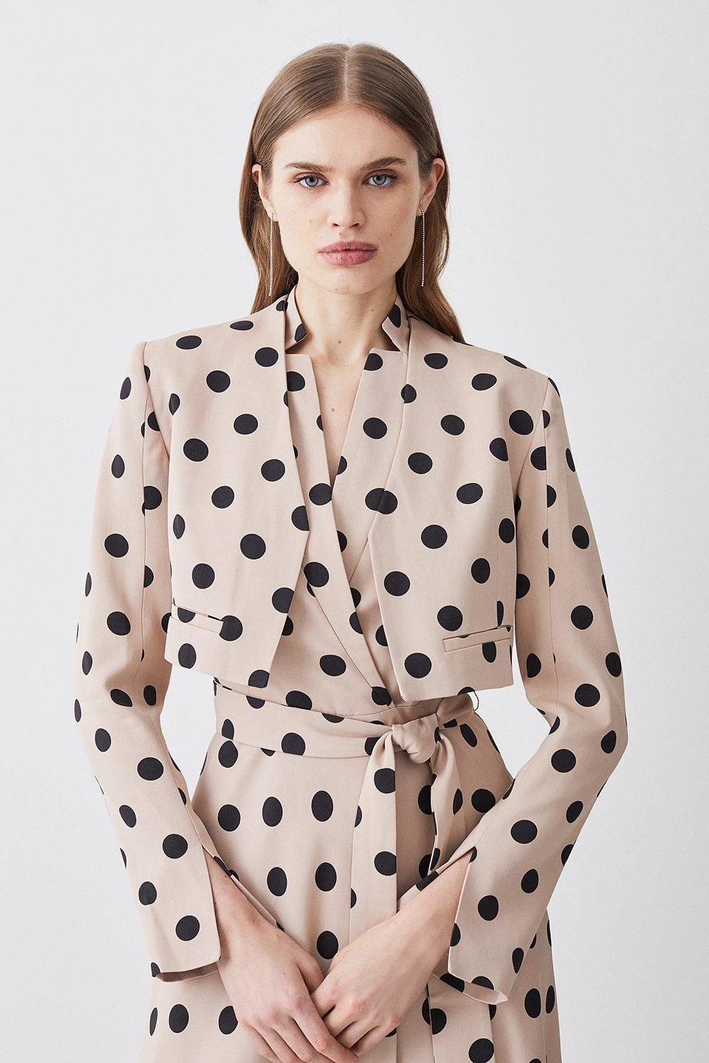 Karen Millen Polka Dot Linen Edge To Edge Cropped Jacket
