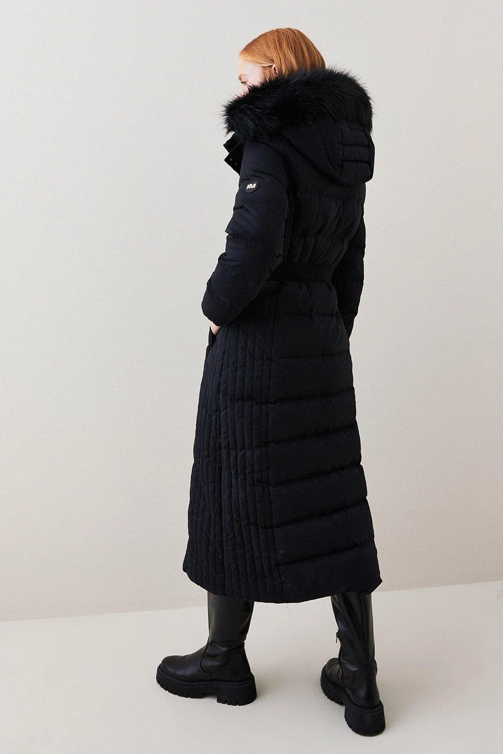 Main: 57% Polyester, 34% Cotton, 9% Nylon. Lining: 100% Polyester. Faux fur trim: 88% Modacrylic, 12% Polyester. Do not dry clean. Model wears UK size 8/ US size 4. Model height approx 5″9. Length Approx: 123cm.