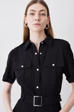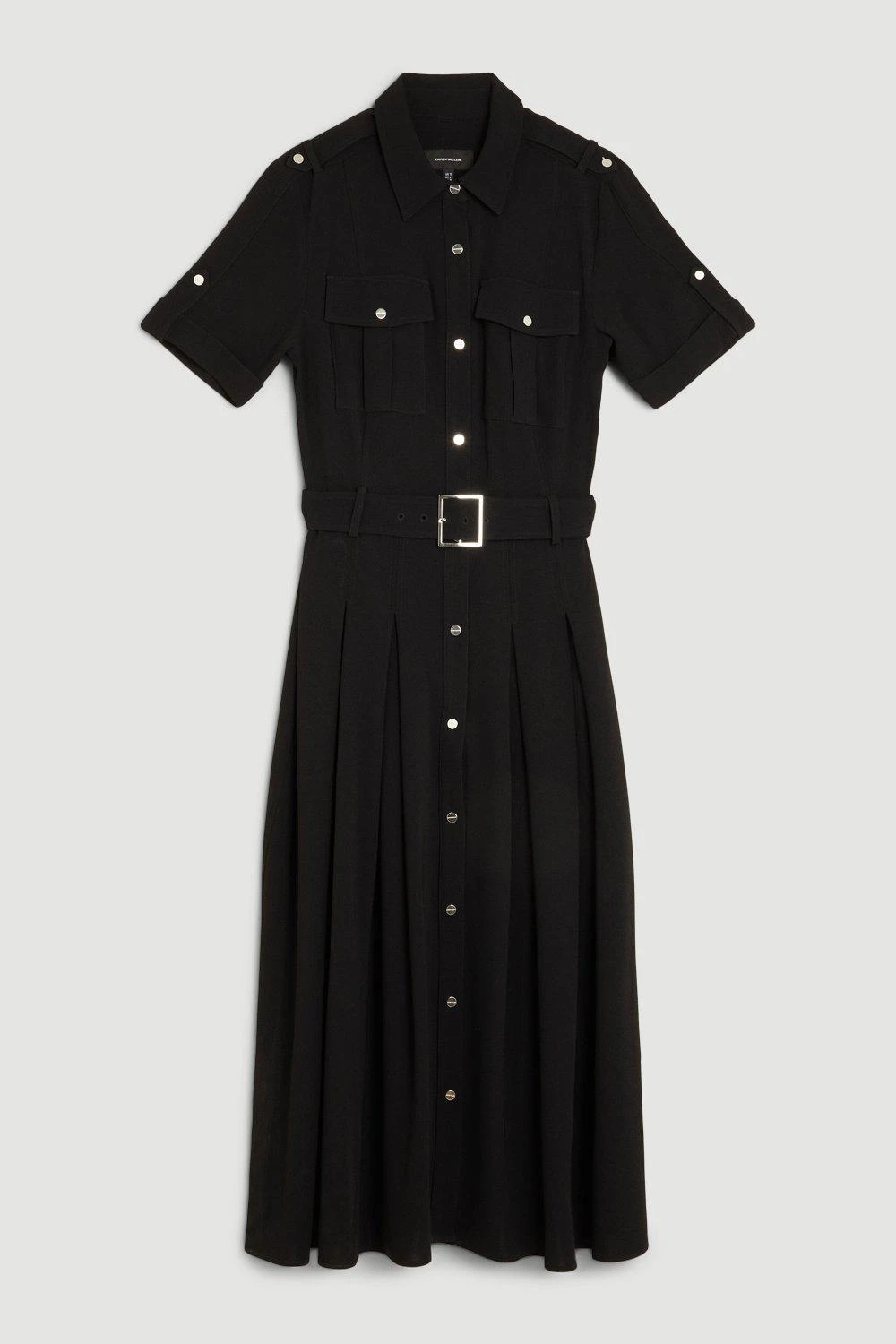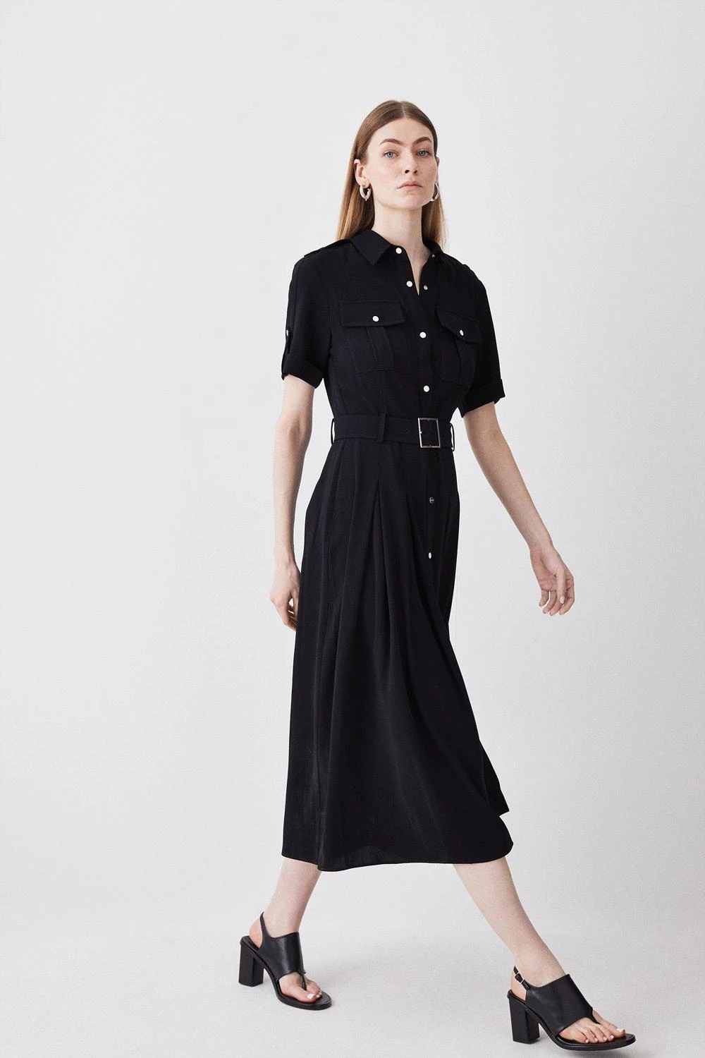 Karen Millen Premium Lightweight Fluid Crepe Full Skirt Belted Midi Dress