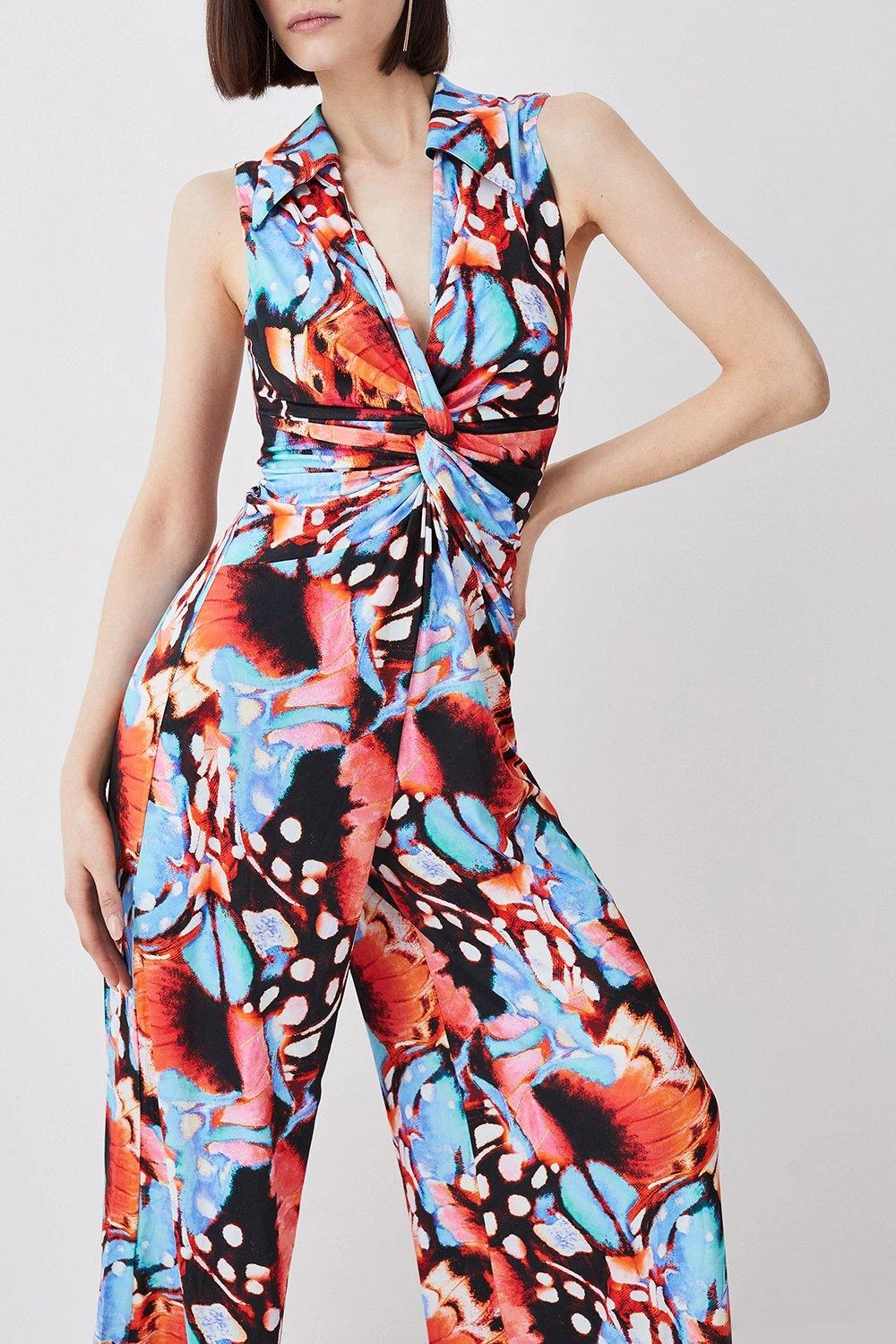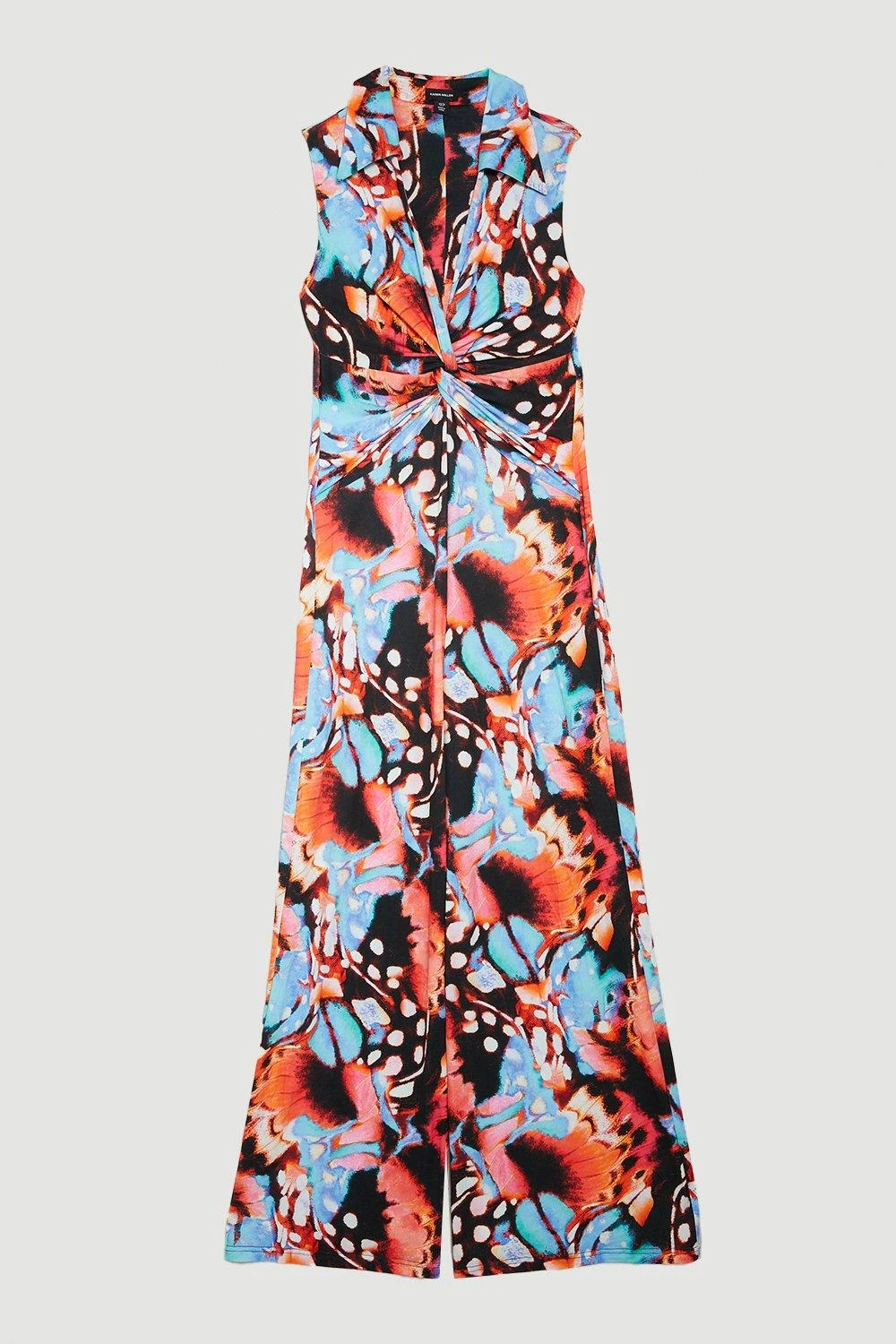 Karen Millen Print Twist Knot Jersey Jumpsuit