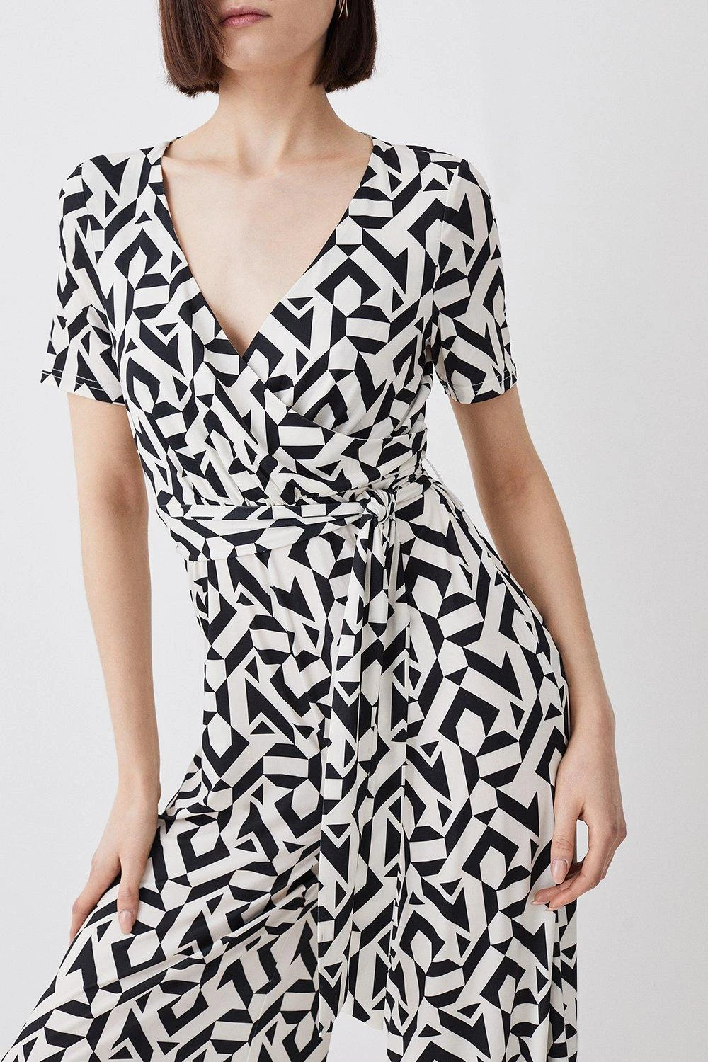 Karen Millen Print Wide Leg Waist Tie Jersey Jumpsuit