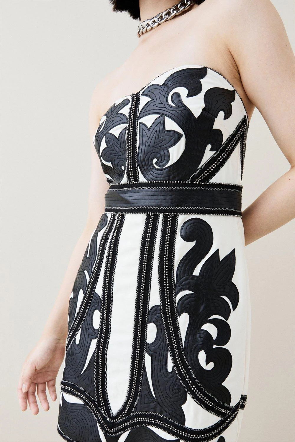 Karen Millen PU Cutwork Applique Strapless Mini Dress -Karen Millen shop mono pu cutwork applique strapless mini dress 3
