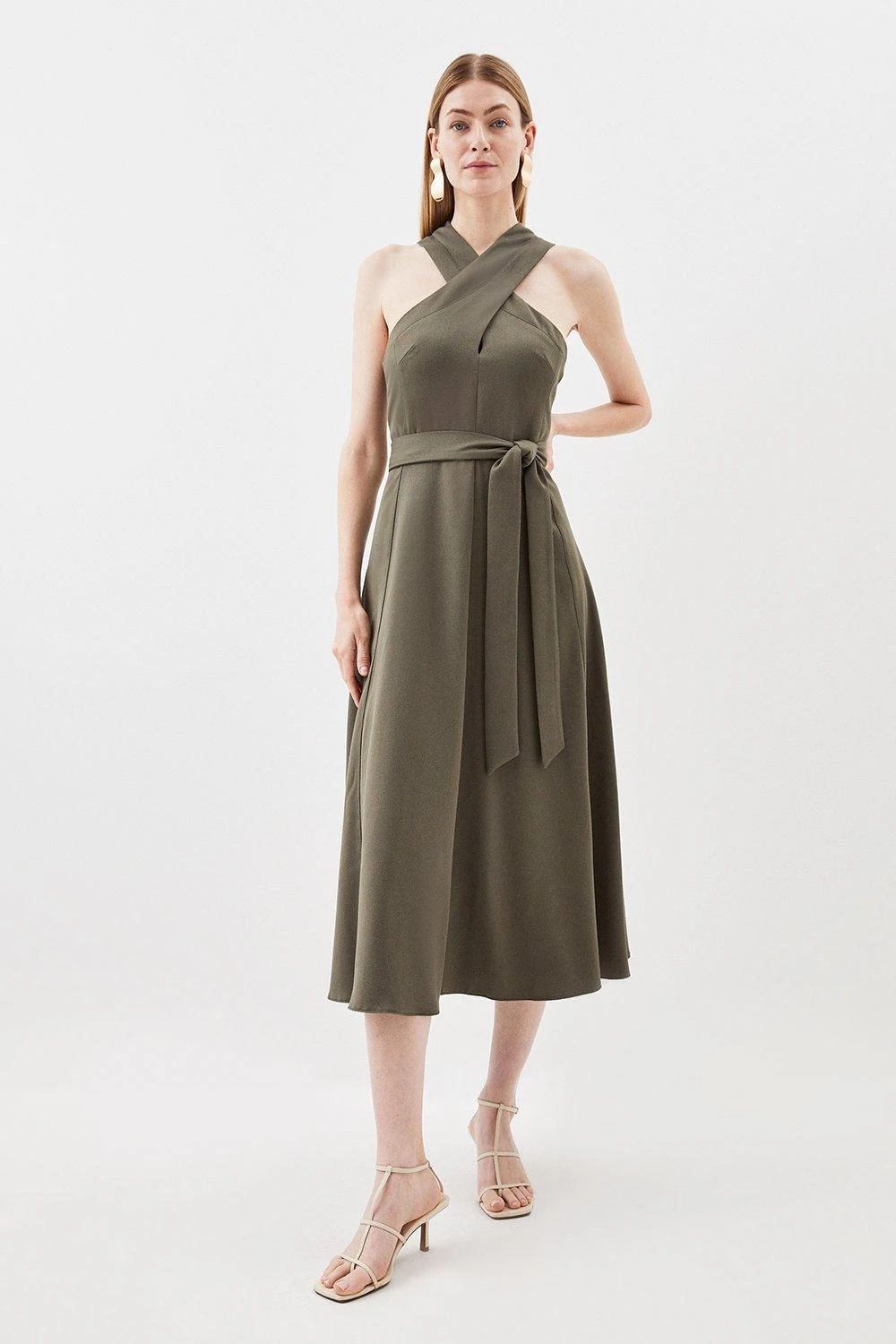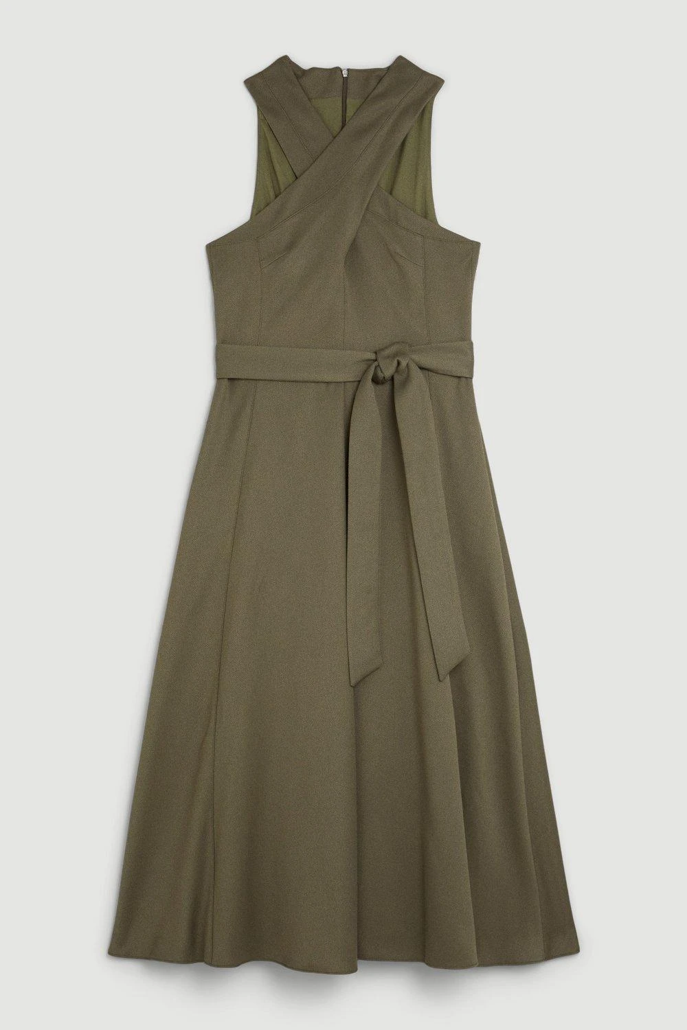 Karen Millen Relax Tailored Notch Neck Belted Midi Dress