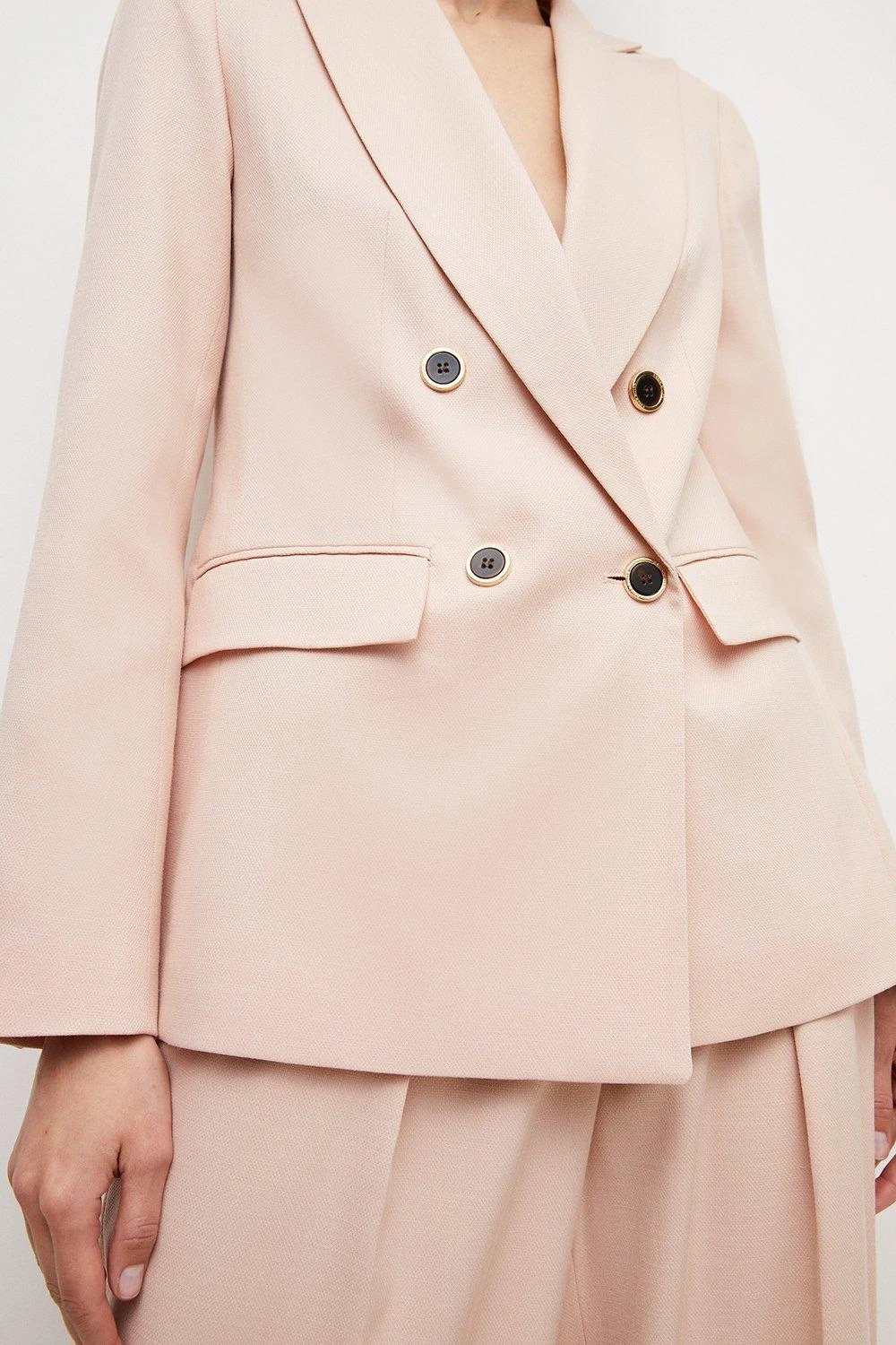 The timeless jacket your tailoring collection has been waiting for, this clean-lined design features simple double-breasted buttons, flap pockets and sharply notched lapels. Worn with high-rise trousers, jeans or pencil skirts, this classic piece will soon become a cherished part of your capsule wardrobe.