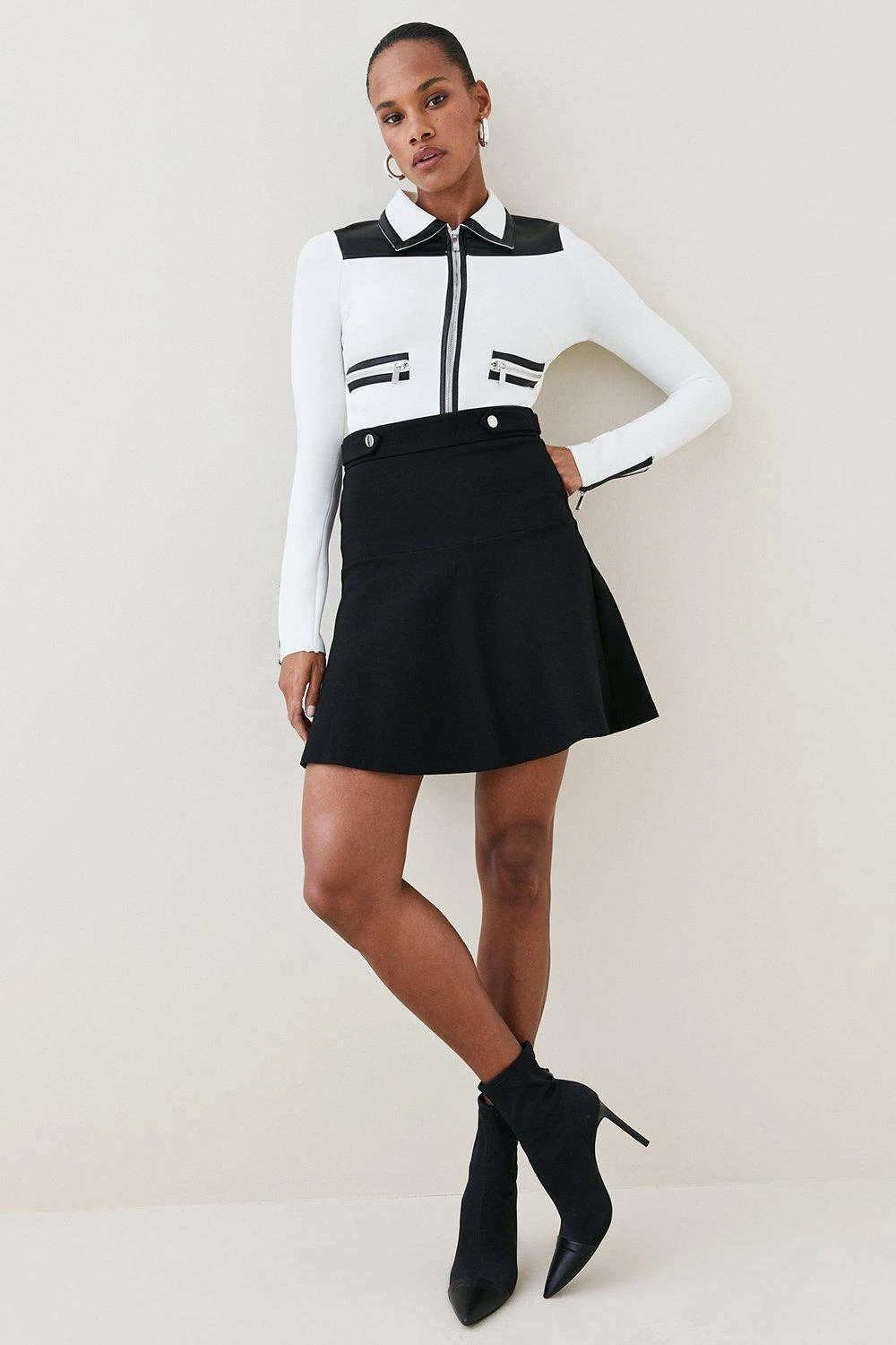 Take your look to great lengths with this sleek ponte mini skirt. Forever flattering thanks to its high waist and A-line silhouette, the glossy button detailing makes it a luxurious choice, whilst the rich cobalt-blue hue ensures a high-impact finish.