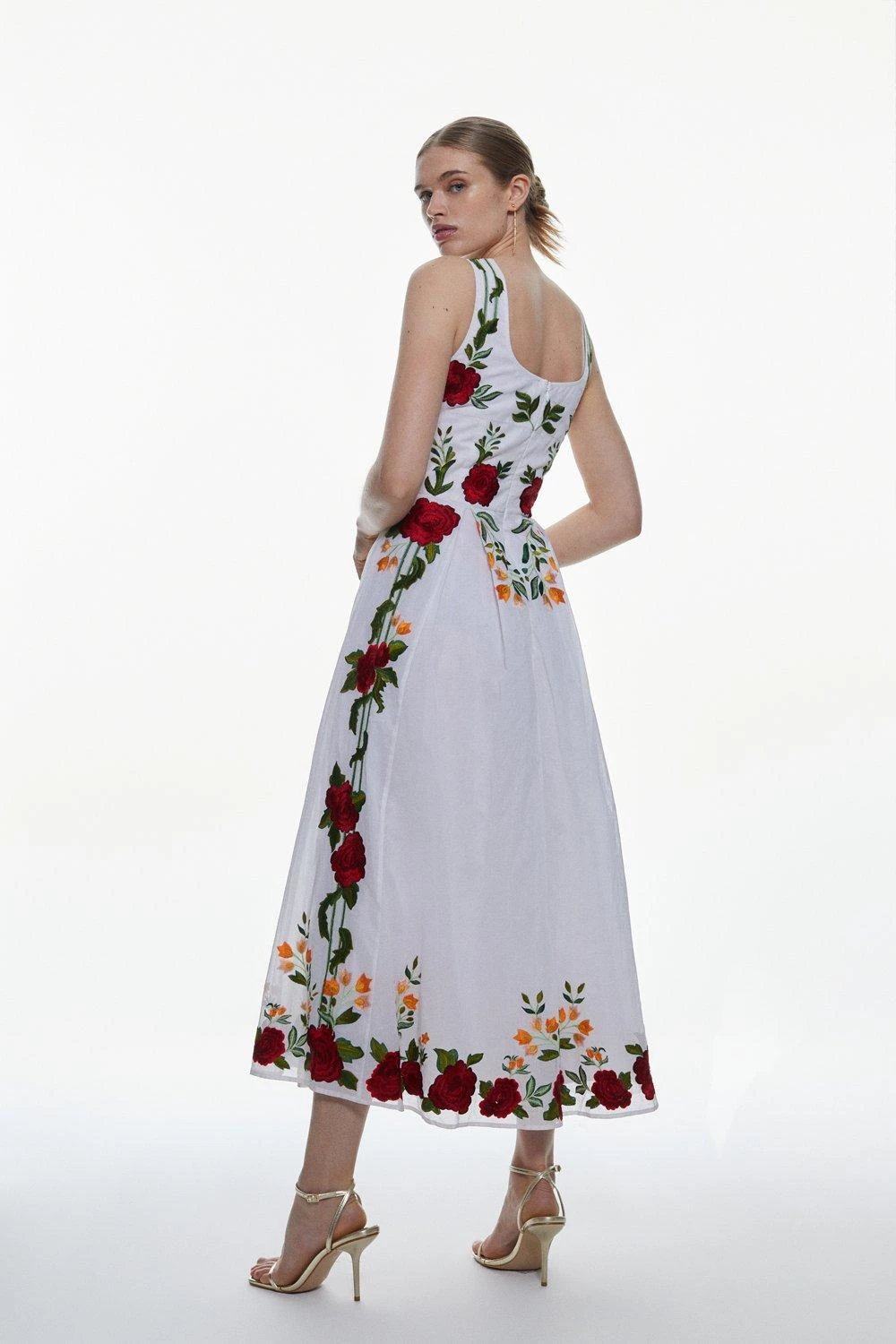 Karen Millen Rose Embroidered Cotton Organdie Midi Dress