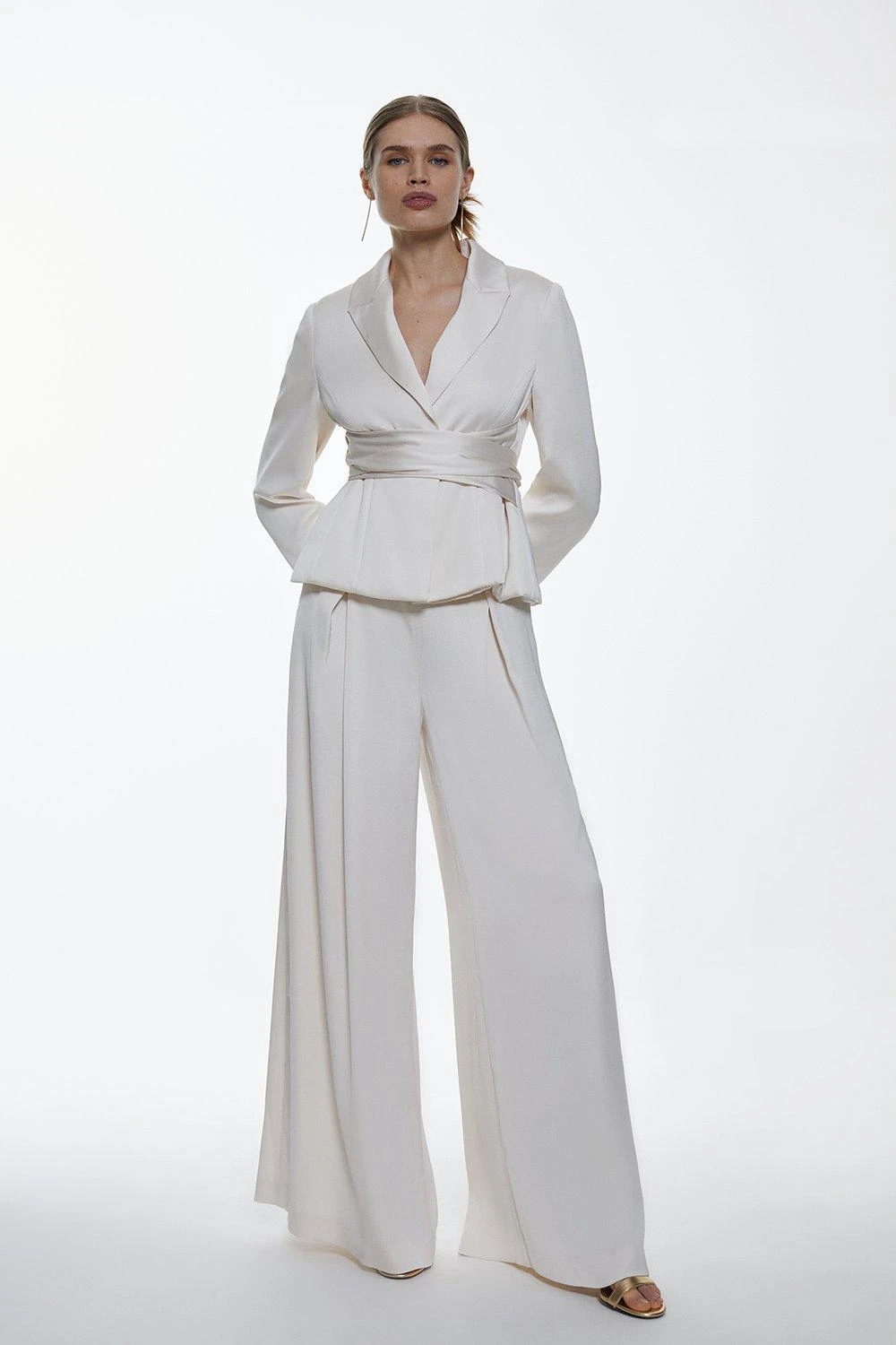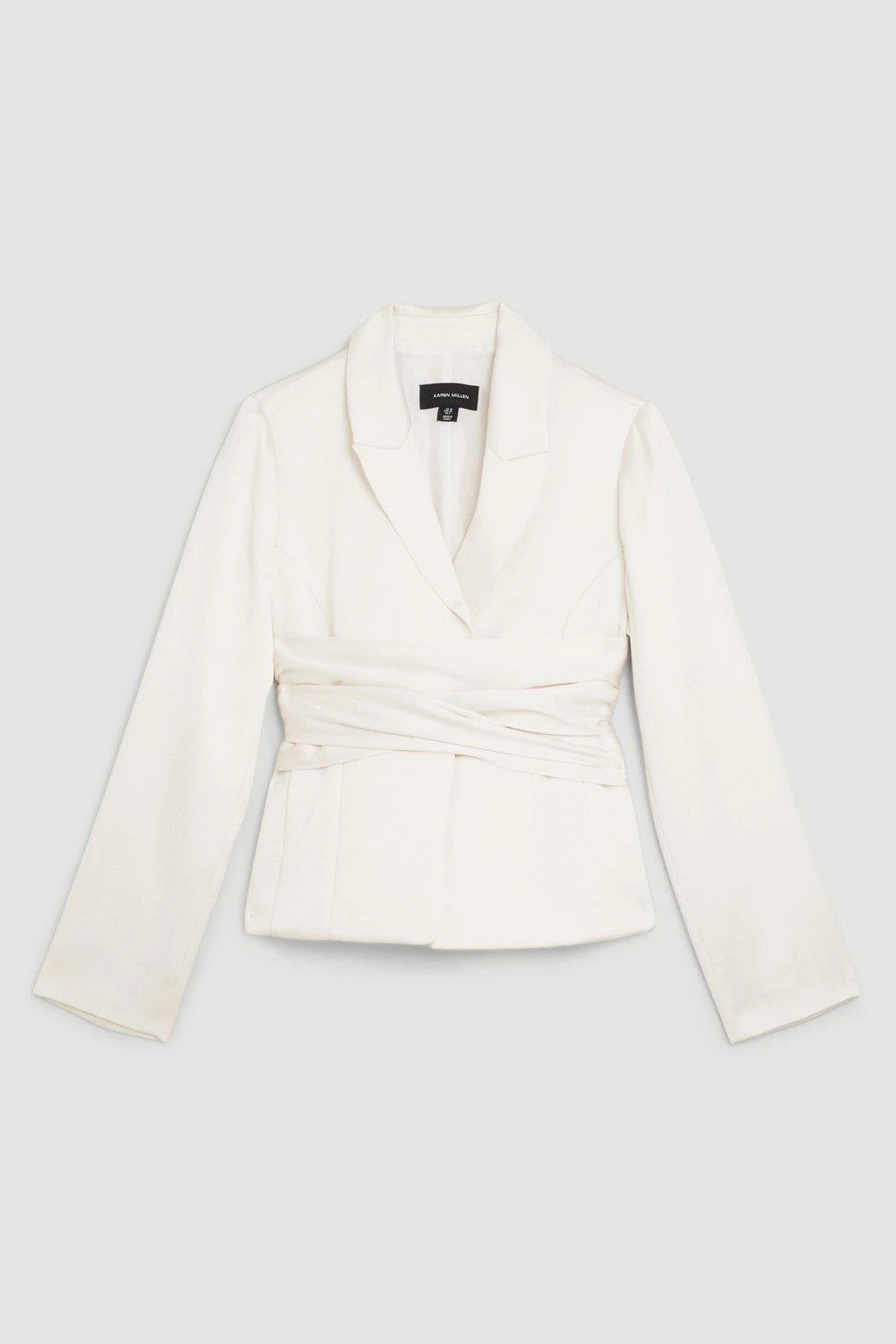 Karen Millen Satin Back Crepe Belted Wrap Jacket