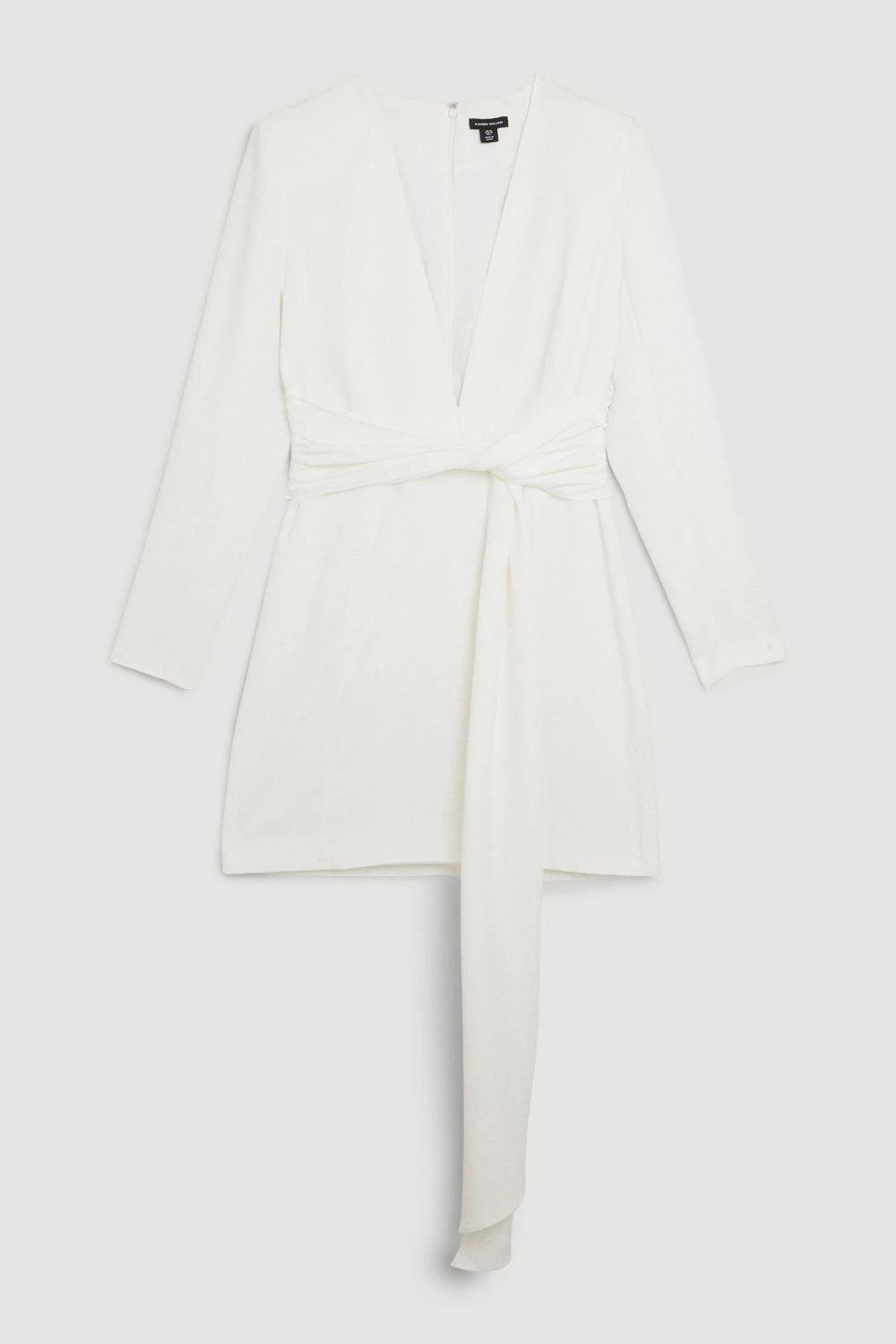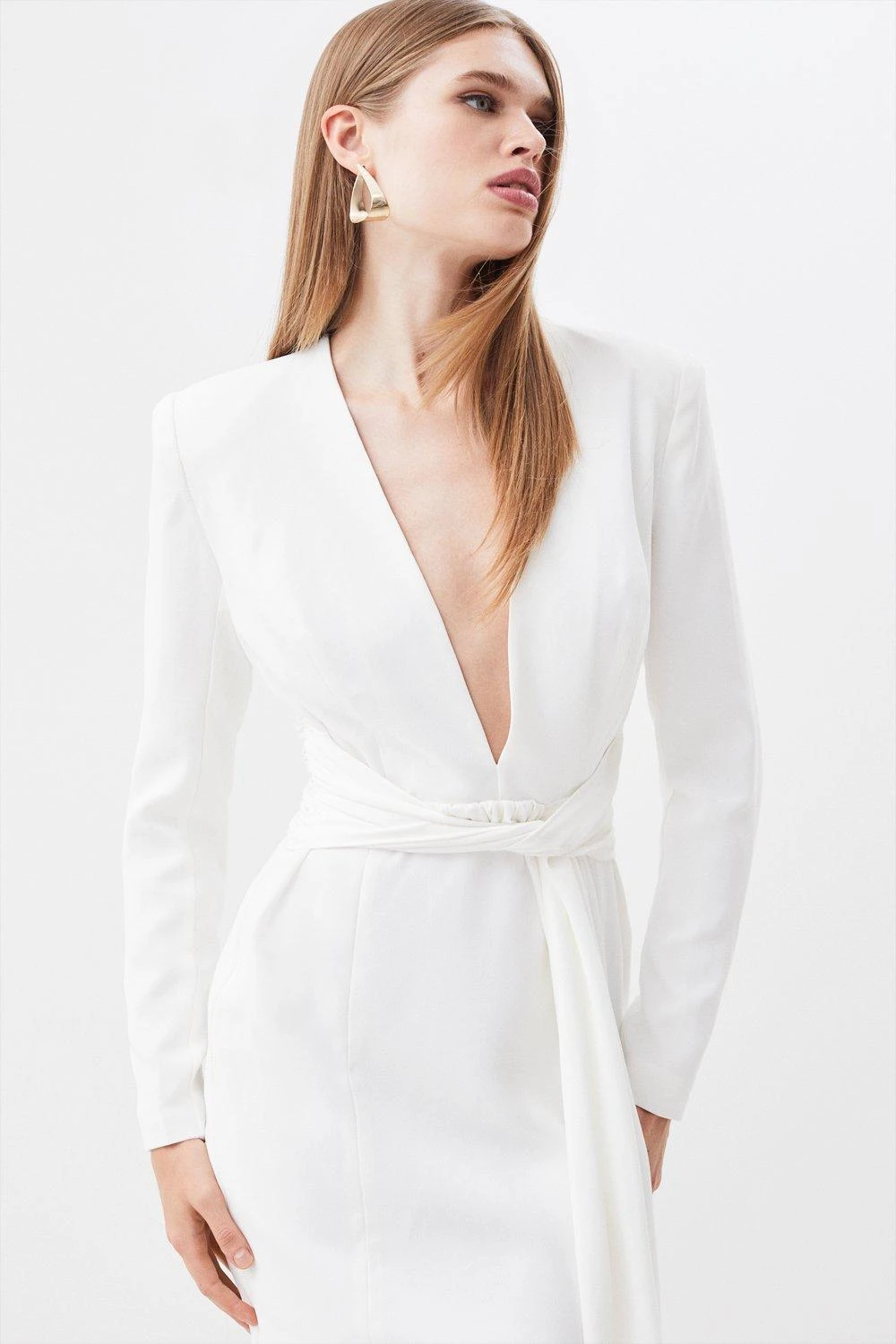 Karen Millen Satin Back Crepe Plunge Neck Woven Mini Dress