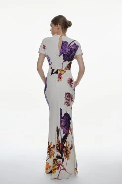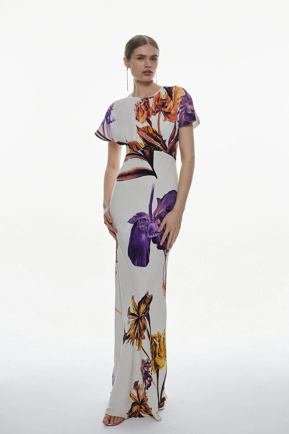 Karen Millen Satin Crepe Drama Floral Maxi Dress