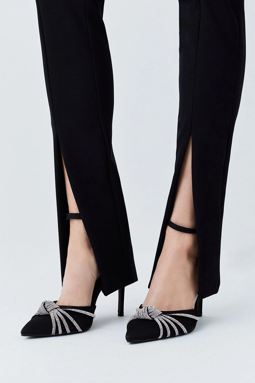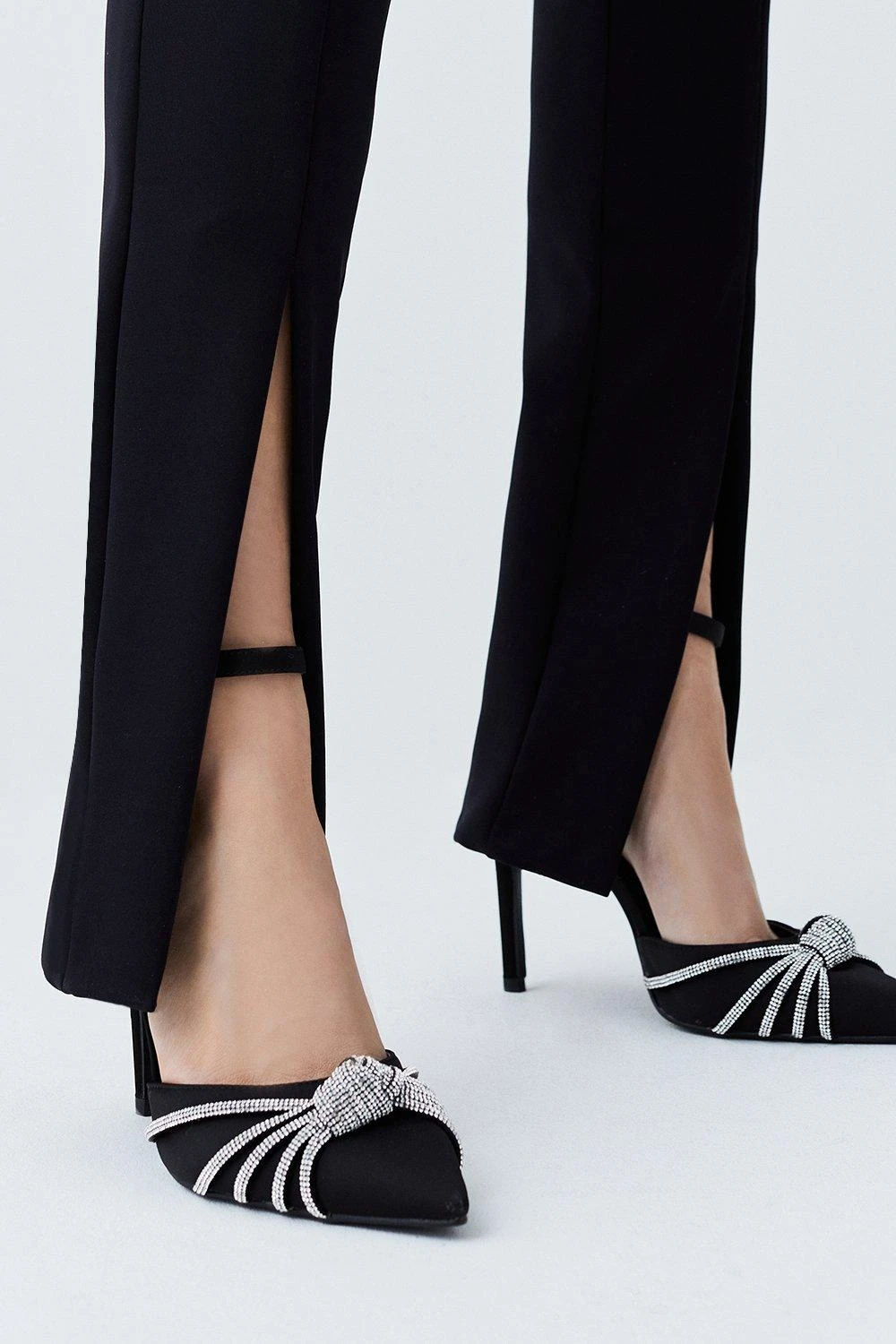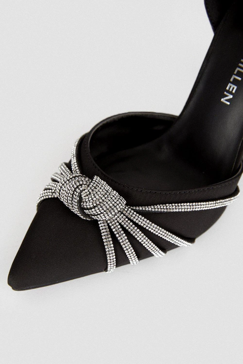 These modern and stylish stiletto heels make a unique addition to your partywear collection. A diamante-clad knot detail adds a touch of glamour to this pair.