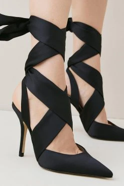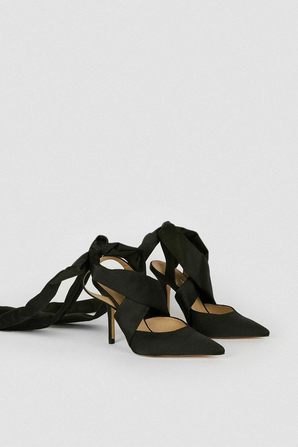 Beautifully framing the legs with beribboned satin ties, these point-toe court shoes mean business when it comes to special-occasion styling. Punctuating the sumptuous silhouette is a slender stiletto heel – perfect for elevating sophisticated party looks in a matter of seconds.