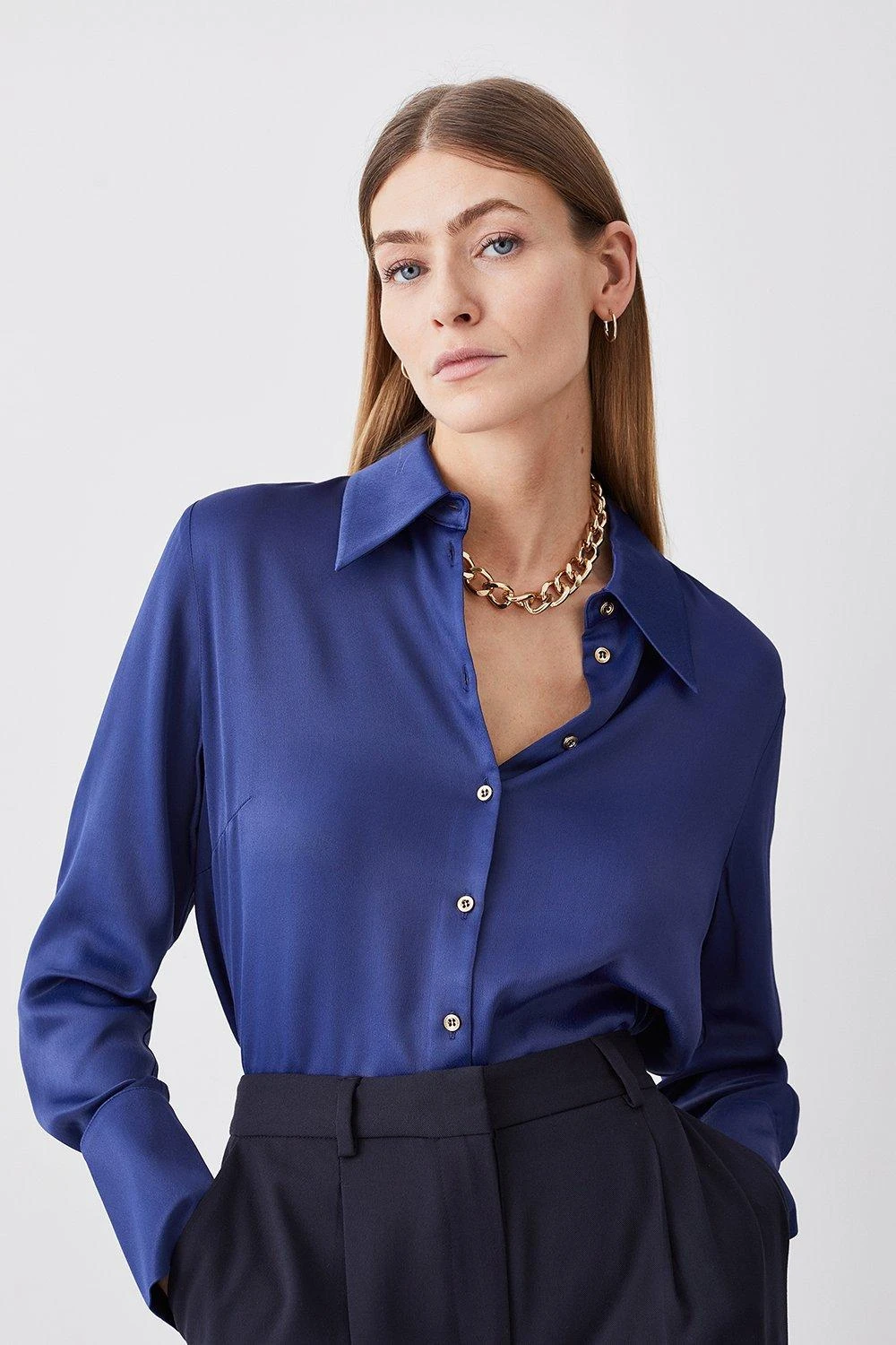 - Neckline: Collared