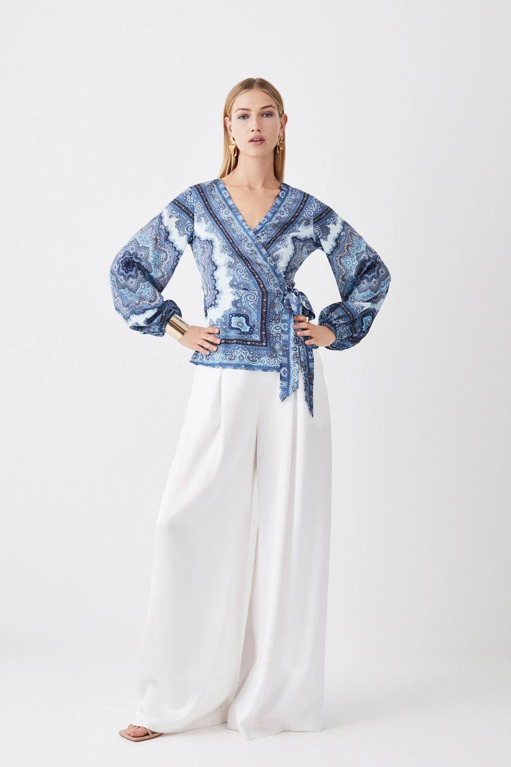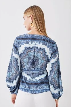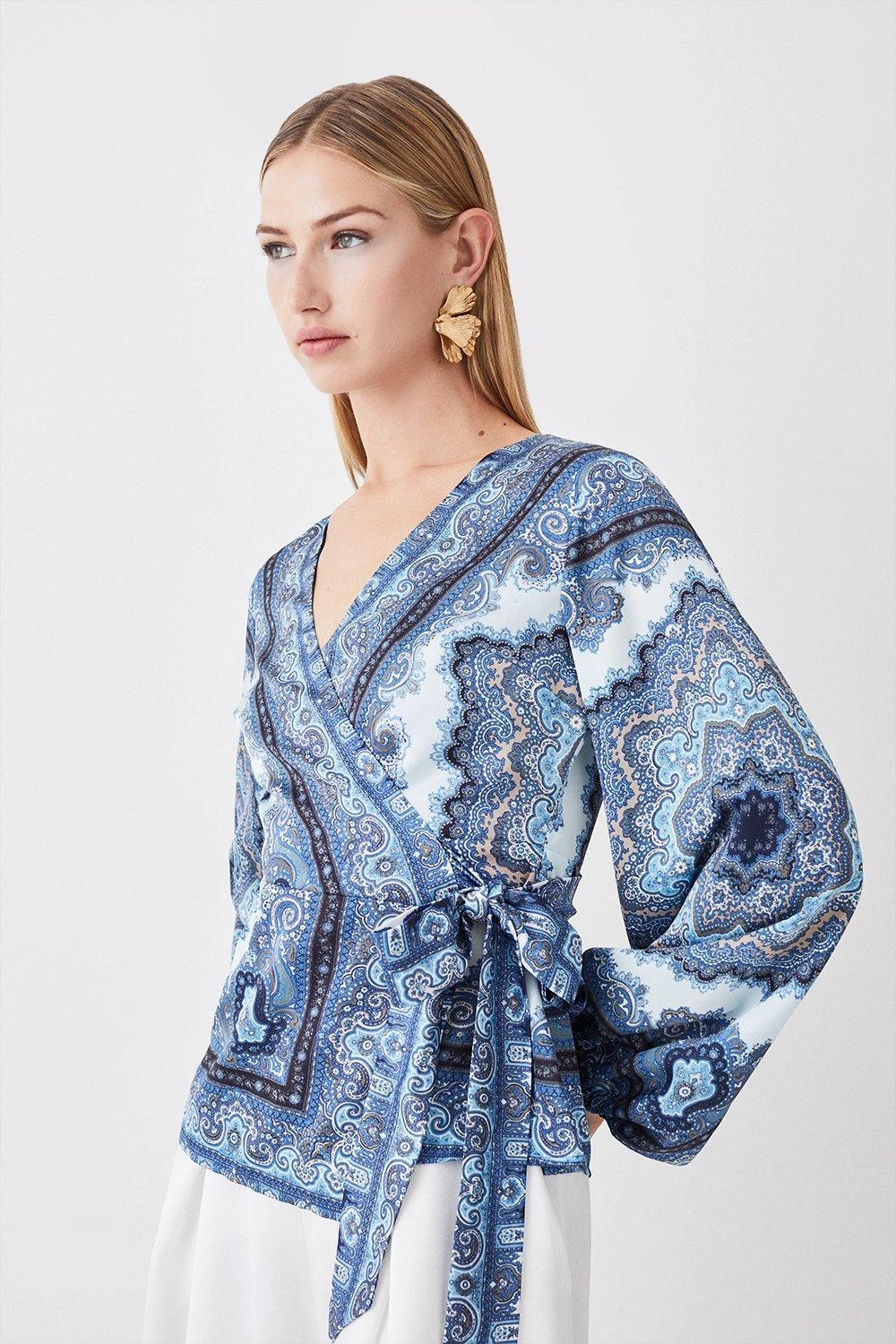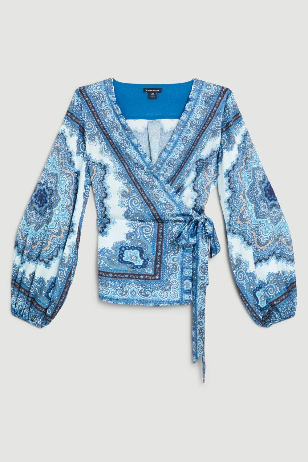 Karen Millen Scarf Printed Hammered Satin Woven Wrap Top