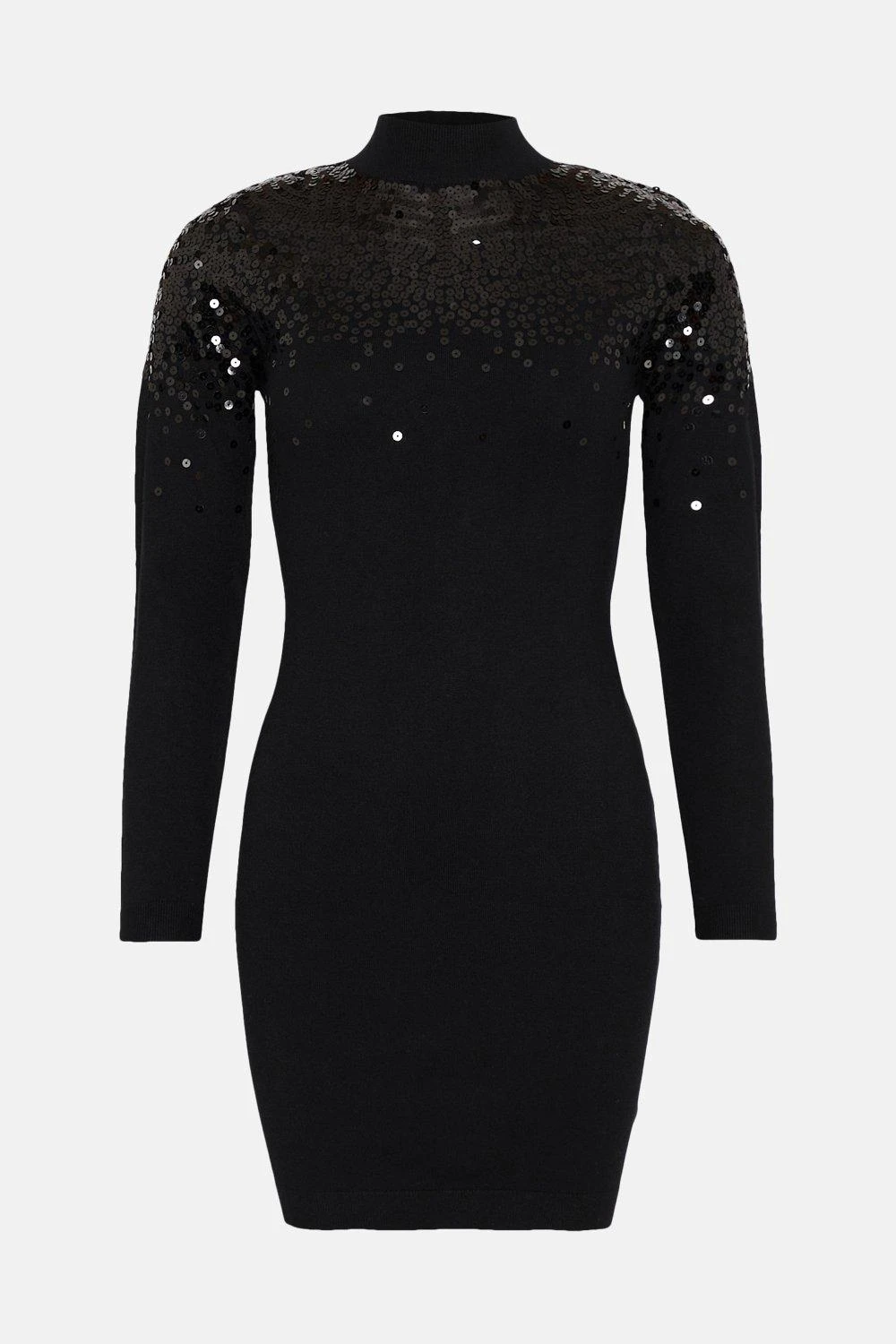 Update your curation of classics with this scintillating iteration of the classic mini dress. Appearing with a dimensional sequinned neckline, this knitted piece has a close fit.