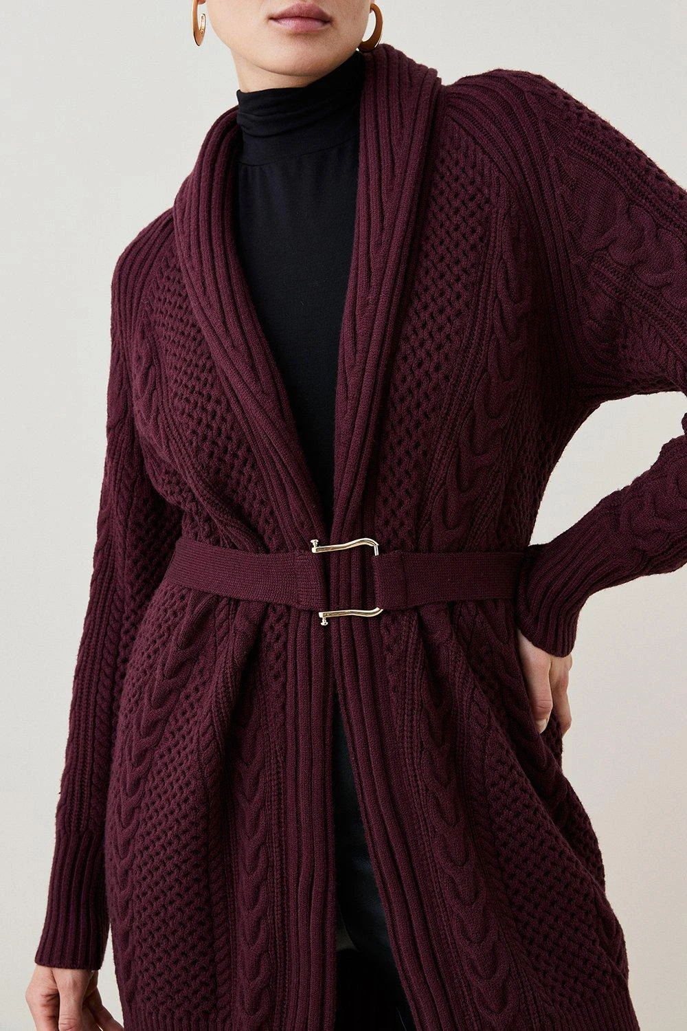 Karen Millen Shawl Collar Cable Knit Cardigan