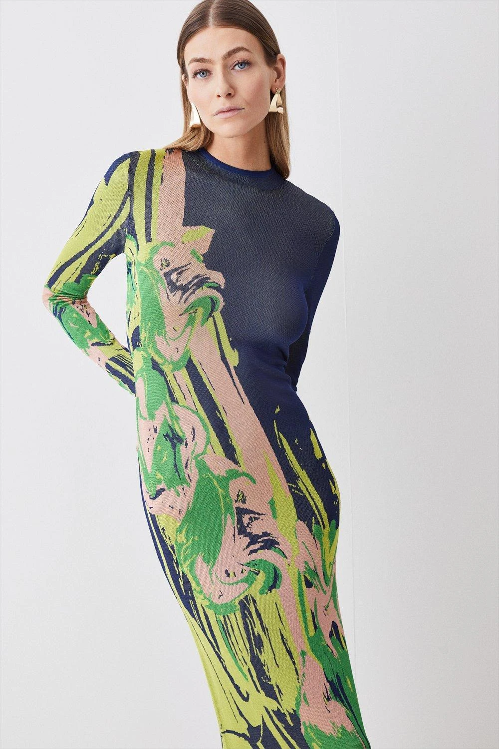 100% Recycled Viscose. Wash separately inside out. Model height approx 5″9. Model wears UK Small. Small centre back length approx: 135cm