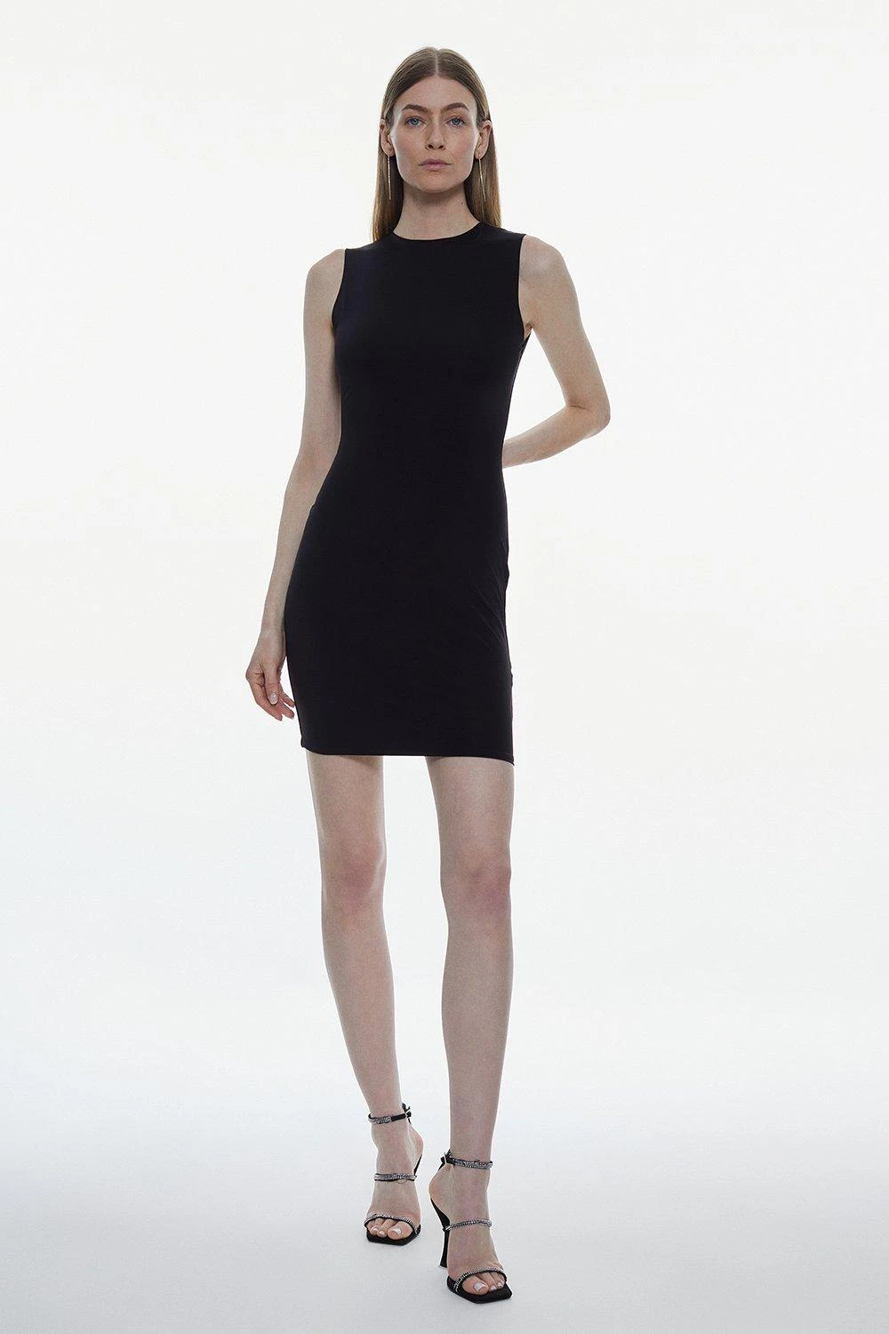 A simple design with endless appeal, this mini dress is designed with slinky jersey material which effortlessly skims the form. A race neckline adds an on-trend touch. Elevate this piece with heels and accessories for after-dark plans.