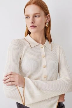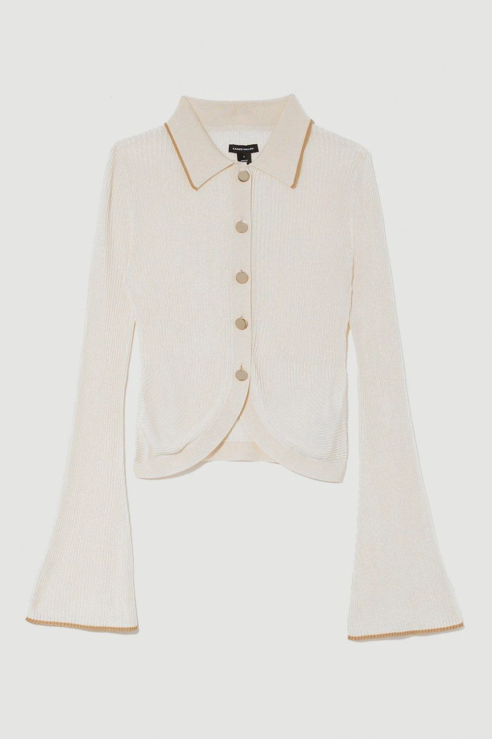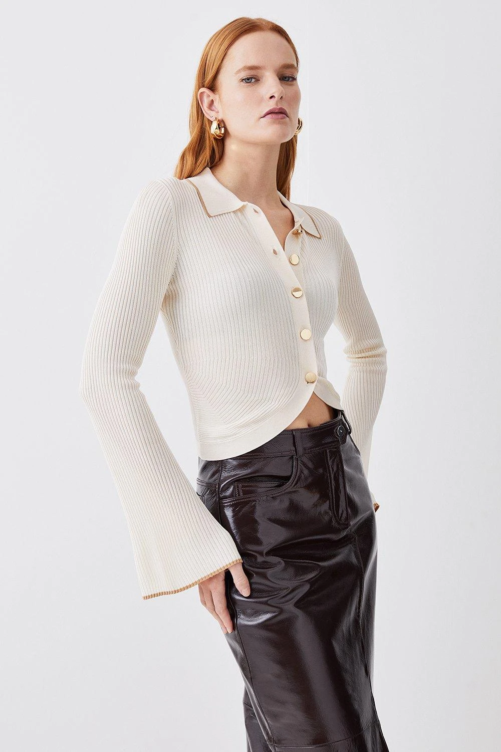 Combining a classic aesthetic with an ethereal feel, this ribbed knit cardigan adds a layer of elegance to any ensemble. Bell sleeves add enviable flare to this simple staple, while gold-tone buttons add a polished finish.
