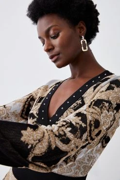82% Recycled Viscose, 18% Metallised Fibre. Wash with similar colours. Model wears UK Small.