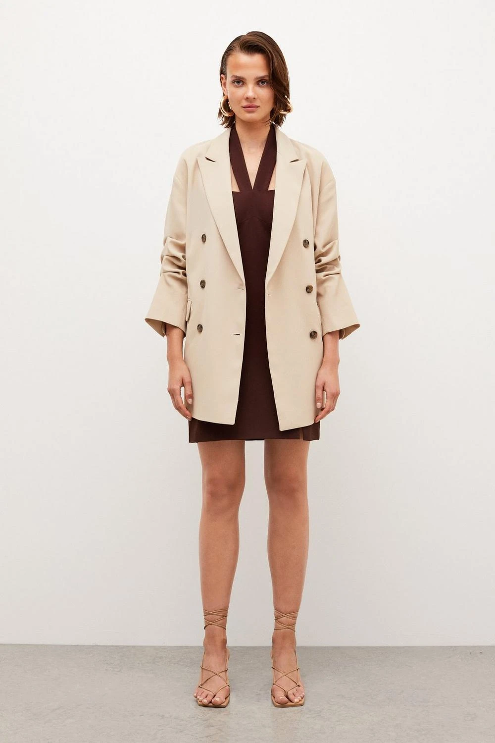 Main: 55% Recycled Polyester, 45% Polyester. Lining: 100% Polyester. Dry clean only. Model wears UK 8/US 4. Model height: 5″9. Length measurement: 78cm.