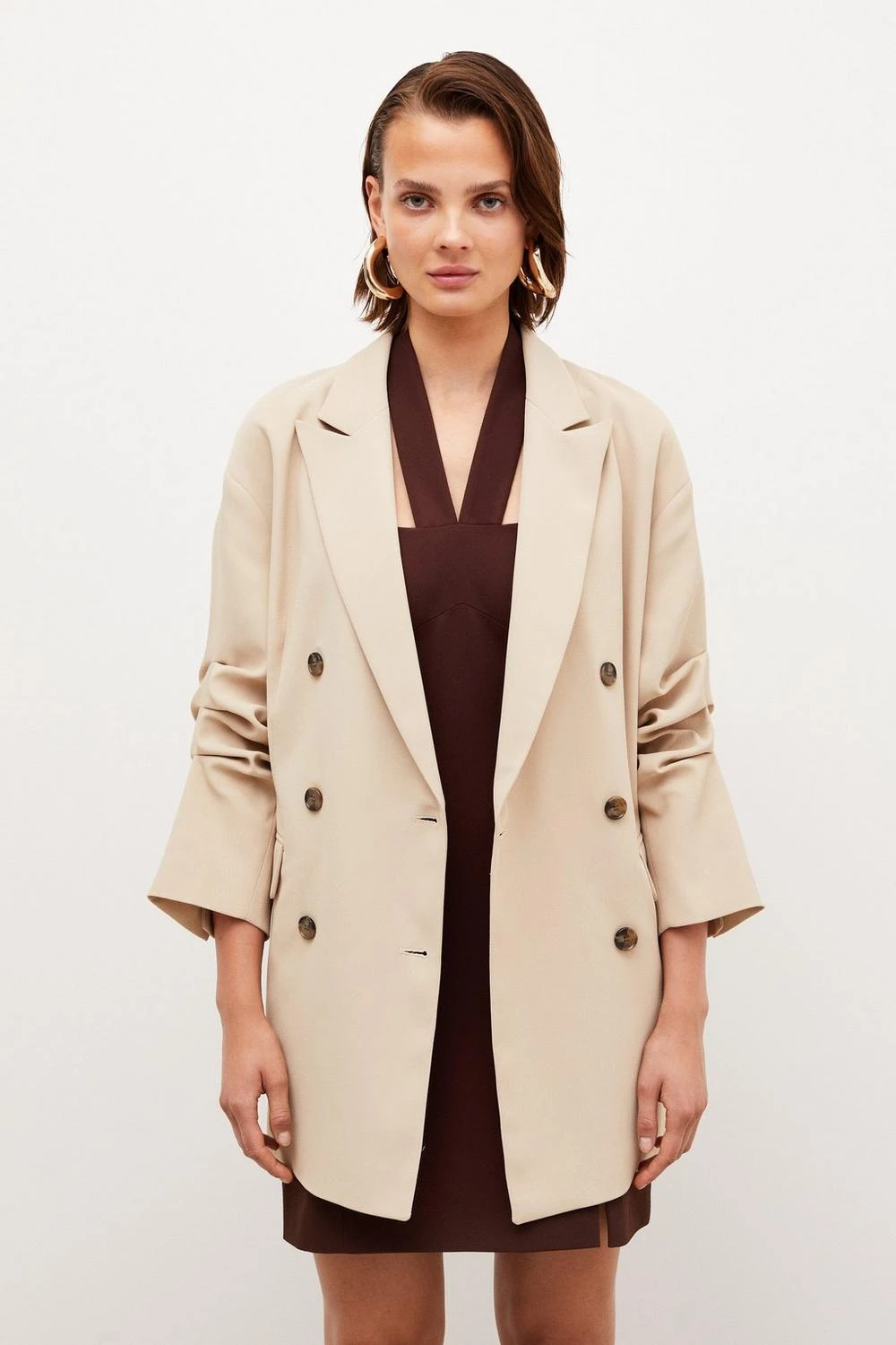 Play with proportions in this on-trend tailored jacket. Crafted from soft twill for a laid-back sense of structure, its oversized fit and longline design make it a must-have piece for those with an eye for current trends. It fastens with classic double-breasted button closures, offsetting flap pockets and classic notched lapels for that ultra-covetable, borrowed-from-the-boys feel.