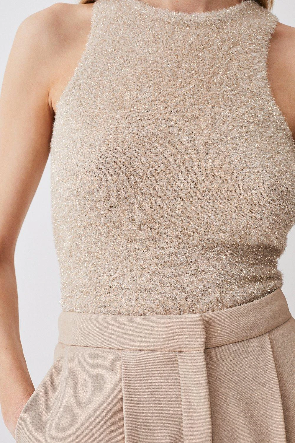 83% Polyamide 17% Metallised Fibre. Hand wash. Model wears UK Small.