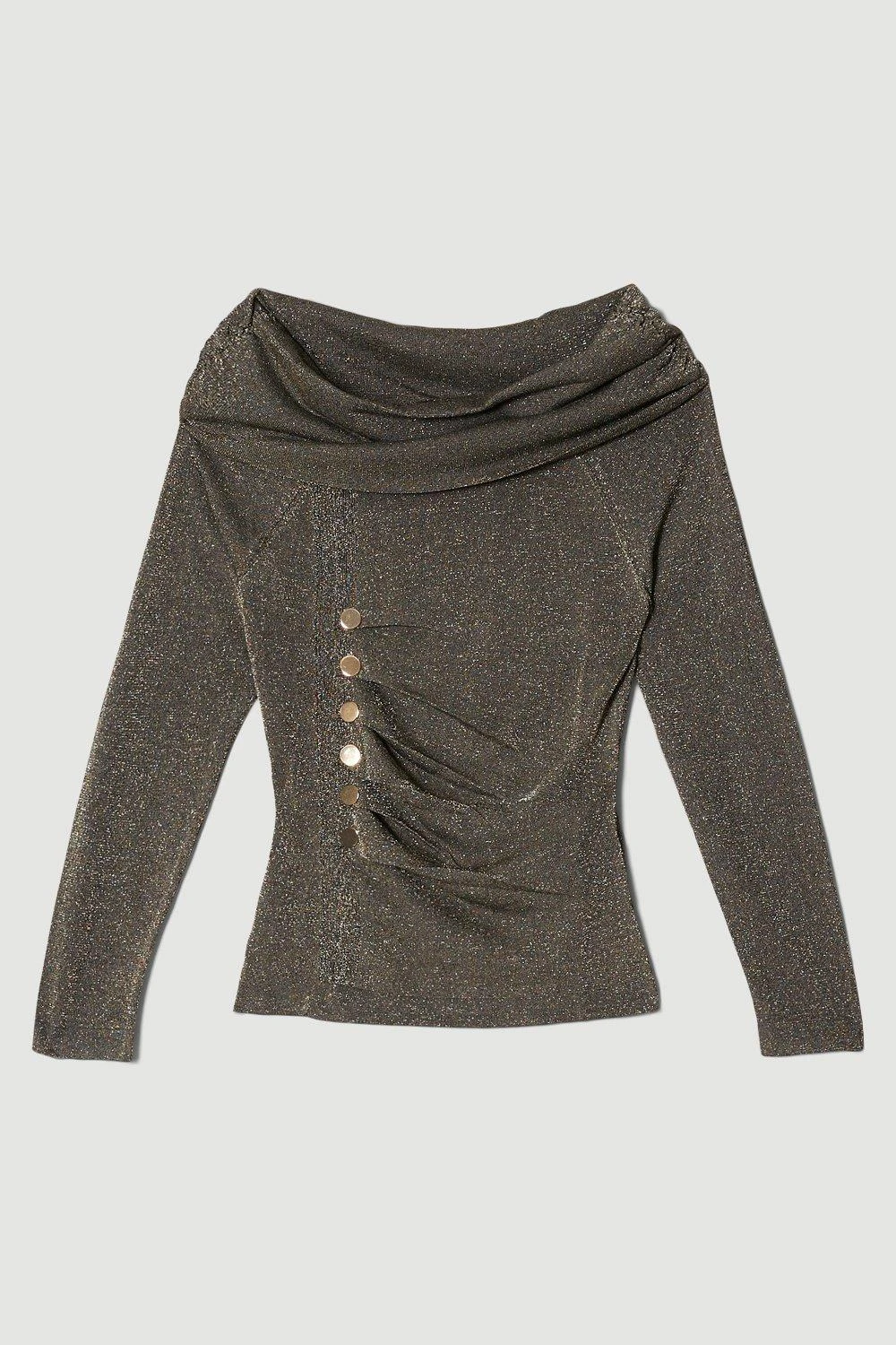 82% RECYCLED VISCOSE, 18% METALLISED FIBRE. DRY CLEAN ONLY. MODEL WEARS UK SMALL